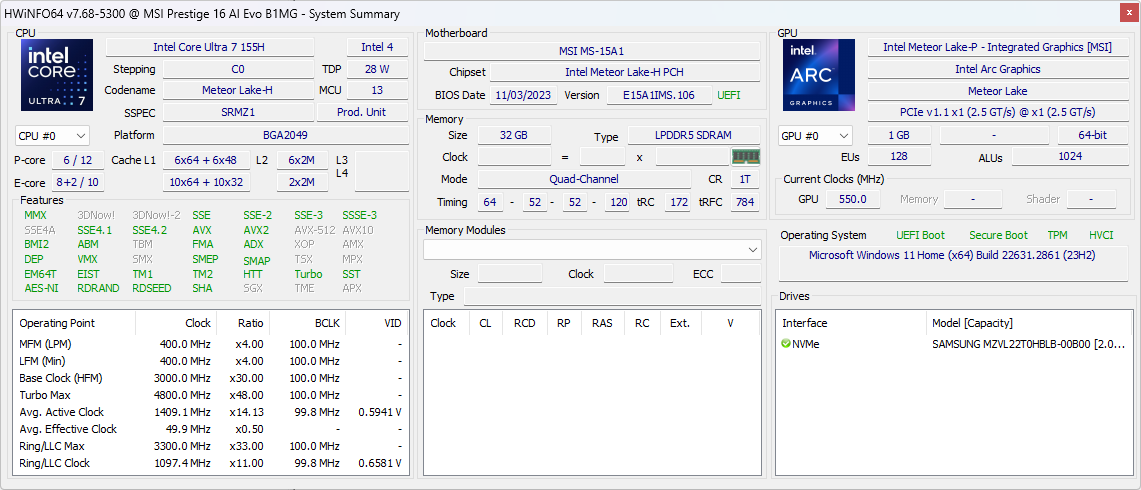 16 inç MSI Prestige 16 AI B1MG, 14. nesil Core Ultra Meteor Lake CPU seçenekleriyle piyasadaki ilk dizüstü bilgisayarlardan biri. Daha eski olan 15,6 inçlik Prestij 15 yepyeni bir kullanıcı deneyimi için hem iç hem de dış kısımları yenilenmiştir. MSI Prestige ailesi, alt seviye dizüstü bilgisayarlar arasında yer alan üst orta seviye dizüstü bilgisayarlardan oluşuyor Modern Aile ve üst düzey Zirve ailesi.