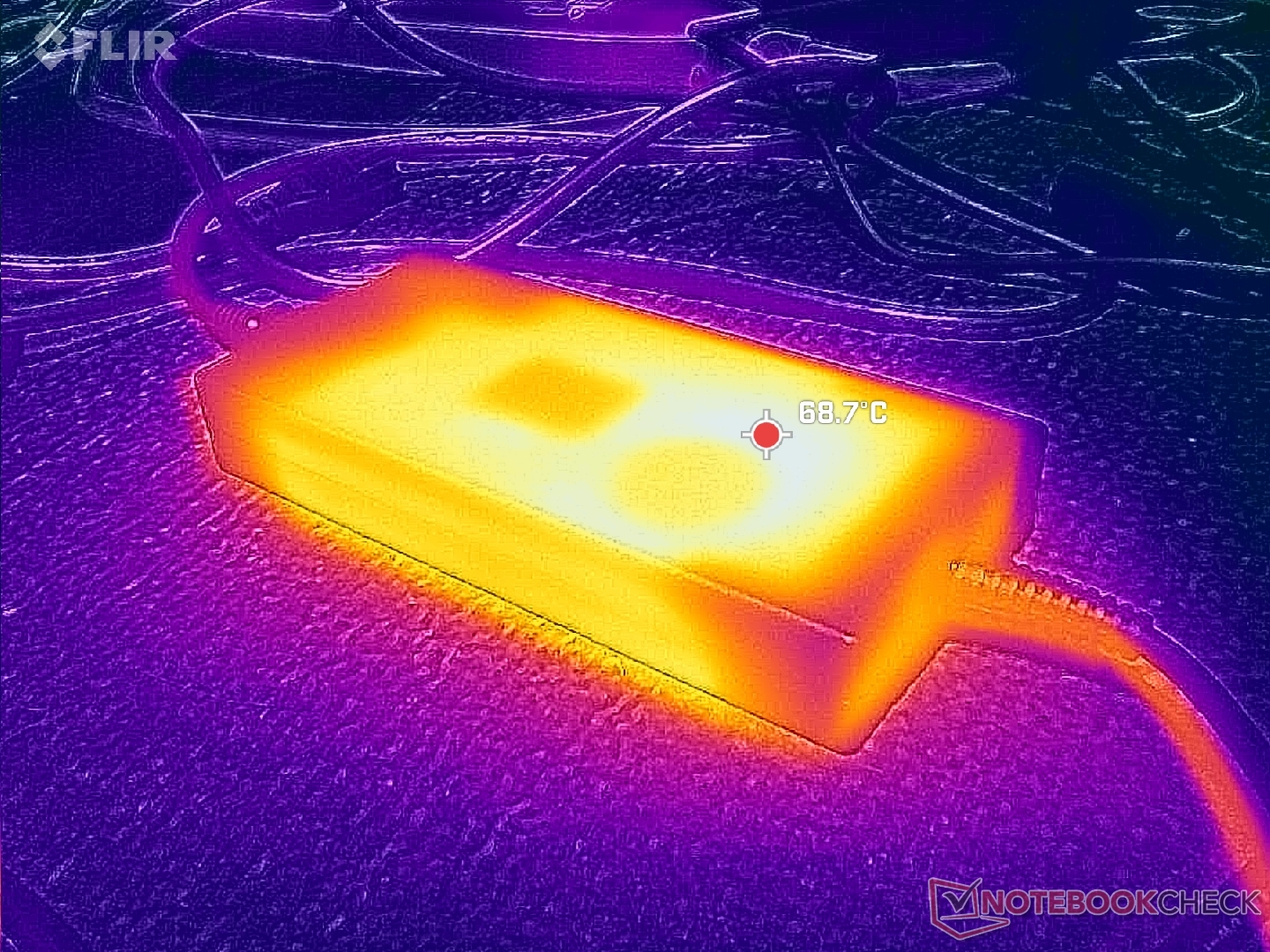 Ayrıca AC adaptörü, oyunlar gibi zorlu yükleri çalıştırırken neredeyse 70 C'ye (!) kadar aşırı derecede ısınabilir. Karşılaştırmak gerekirse, yukarıda bahsedilen cihazın AC adaptörü Bıçak 18 yük altında 50 C'nin altında kalacaktır.