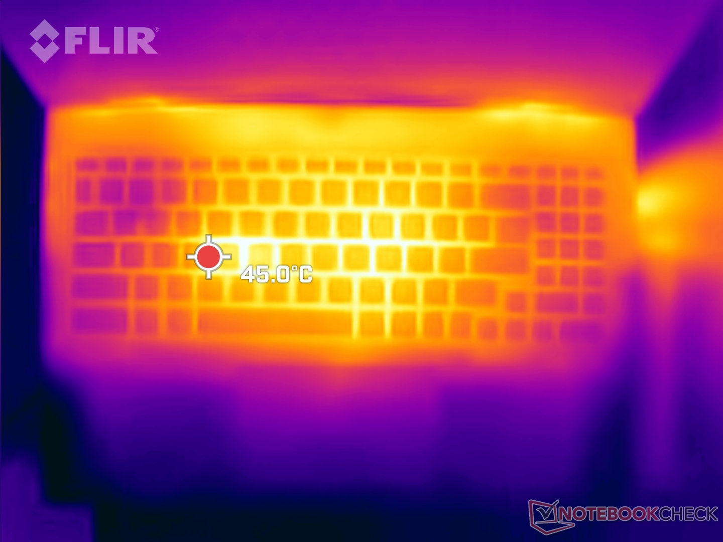 (-) 3: The average temperature for the upper side is 40.4 °C / 105 F, compared to the average of 33.9 °C / 93 F for the class Gaming.