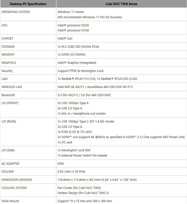 MSI, iş odaklı bir tasarıma sahip yeni bir Intel mini PC serisi olan Cubi NUC TWG serisini tanıttı. Şimdiye kadar iki model duyuruldu ve bunlardan biri olan TWG S, fansız bir tasarıma sahip.