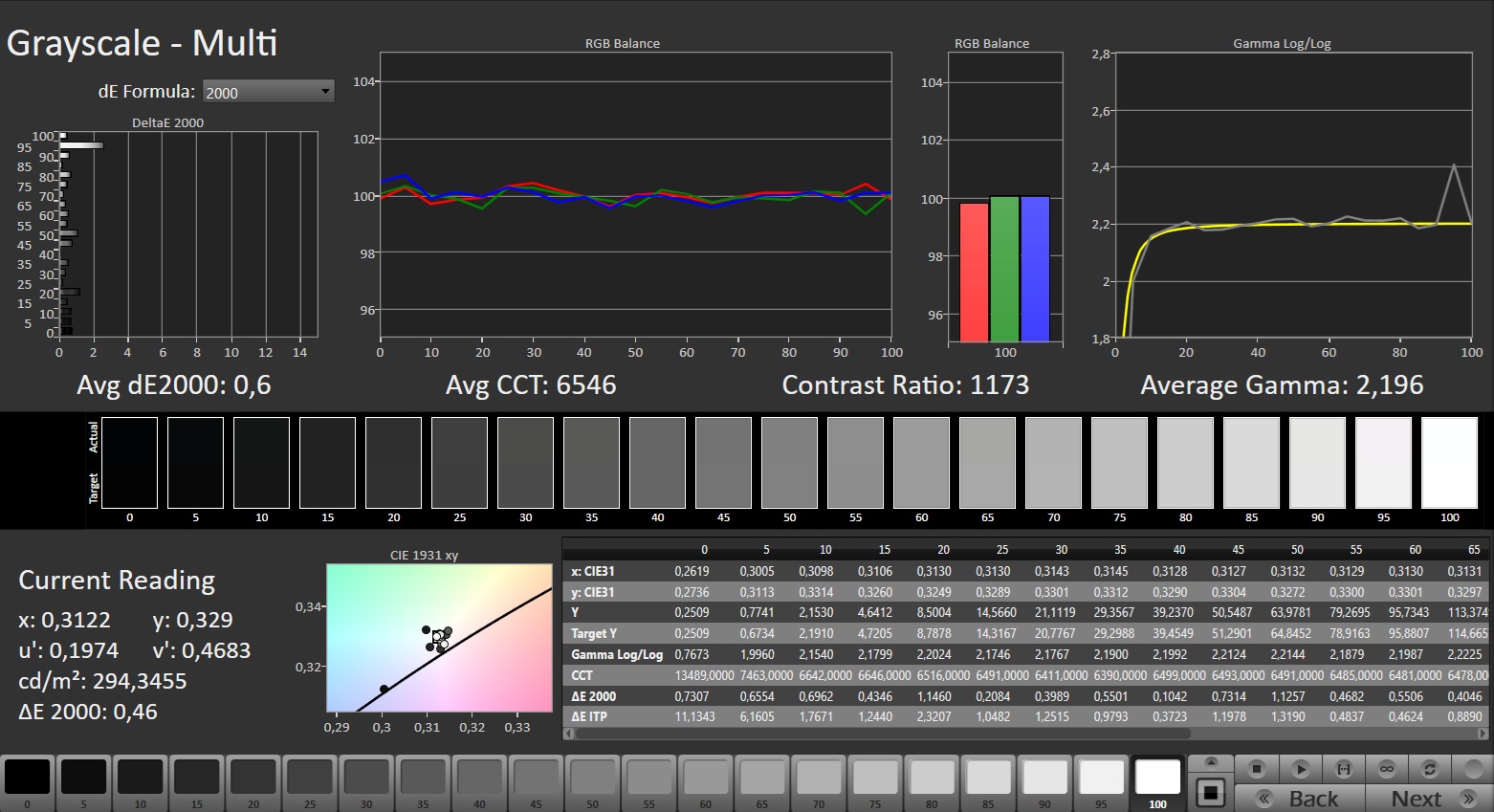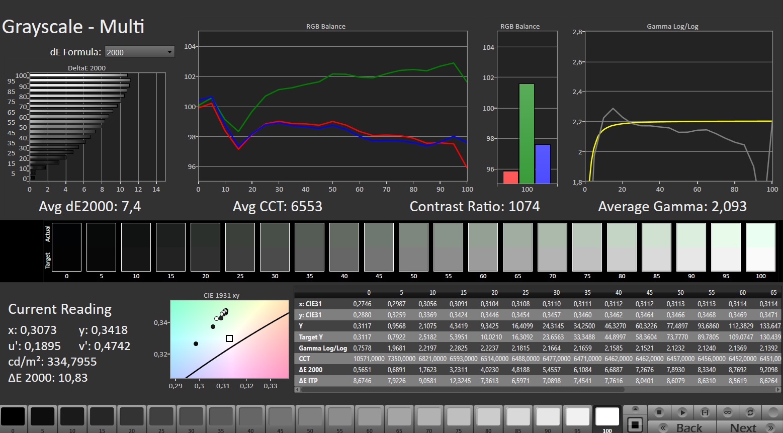 ΔE Greyscale Calman: 7.4 | ∀{0.09-98 Ø5}