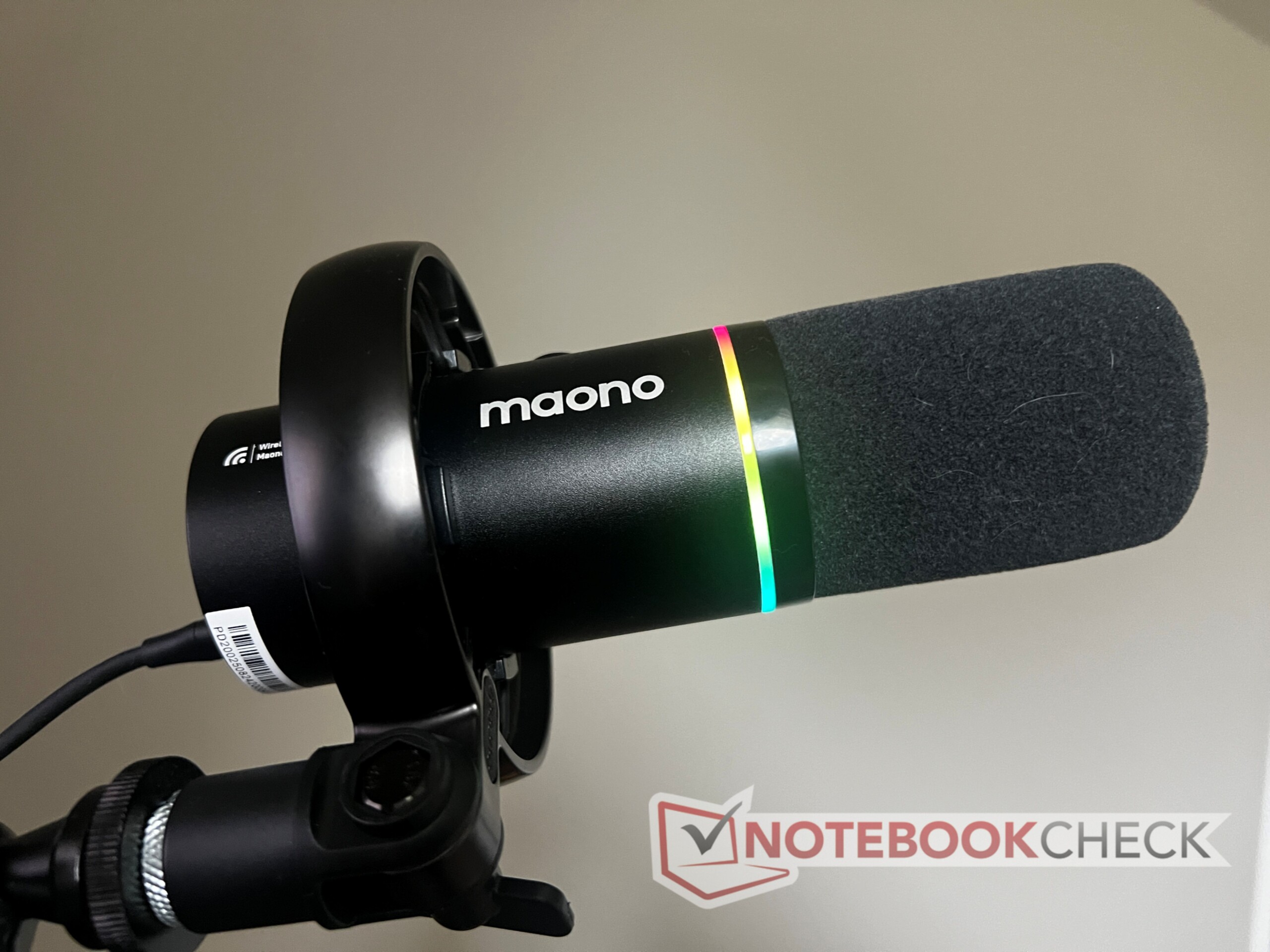 Mikrofonun alt kısmında XLR ve USB-C girişlerinin yanı sıra bir güç düğmesi (LED halkasını çeşitli renkler arasında döndürmek için de kullanılabilir) ve kulaklıklar için 3,5 mm ses çıkışı bulunuyor. USB-C portu aynı zamanda Maono'nun 60 saate kadar şarj edebileceğini belirttiği mikrofonun pilini şarj etmek için de kullanılıyor. İlkel testlere dayanarak, bu pil iddiası kullanıma bağlı olarak oldukça doğru görünüyor. RGB'yi açmak pil ömrünü yarıya indirir.