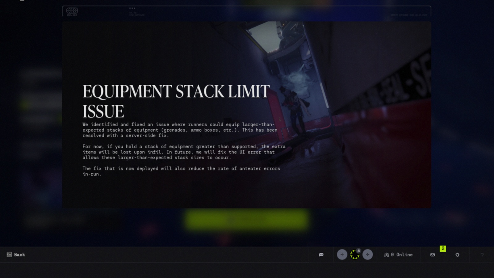 Ekran görüntülerimiz ayrıca Bungie'nin 18 Mart'tan itibaren iki hafta boyunca Perimeter'de Deneysel İkili Kuyruğu test ettiğini ve ekipman yığını sınırı sorunu için sunucu tarafında bir düzeltme yapıldığını ve Bungie'nin koşular sırasında karıncayiyen hatalarını da azaltacağını söylediğini gösteriyor. Bir başka oyun içi bildirimde, Dereceli Mod ve ek Cryo Arşivi etkinliklerinin de yolda olduğu belirtiliyor.