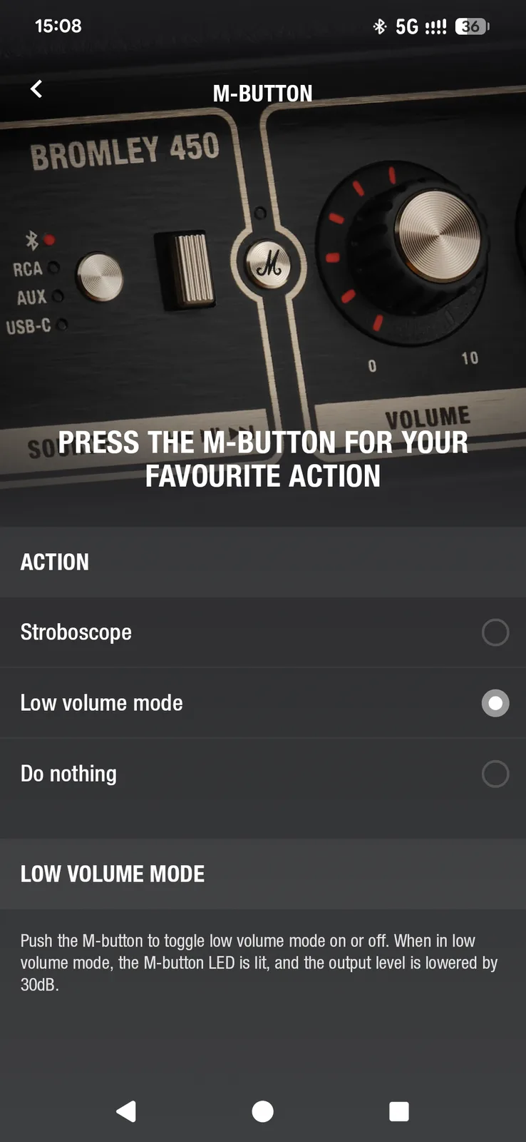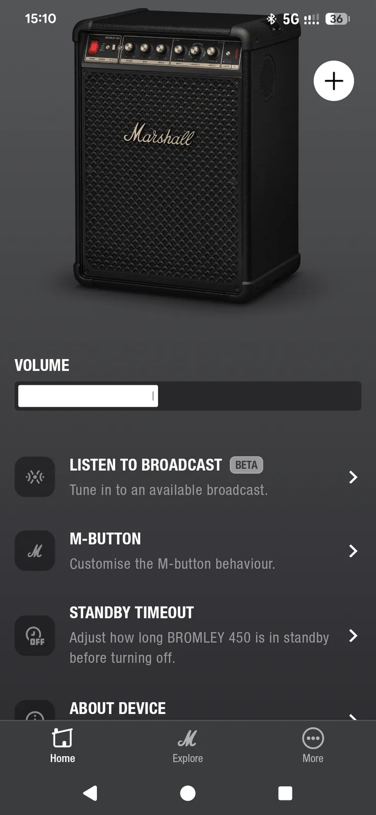 Bromley, Marshall'ın kulaklıklarıyla aynı uygulamayı kullanıyor. Marshall Bluetooth uygulaması temiz görünüyor ve gezinmesi kolay, ancak özellik bakımından eksik. Esas olarak Auracast (birden fazla uyumlu hoparlörü bağlama) ve şu anda atanabilir iki işlevden yalnızca birini destekleyen M düğmesini yapılandırmak için ihtiyacınız olacak. Ses kontrolünün ötesinde, uzaktan ayarlayabileceğiniz pek bir şey yok; EQ yok, tiz veya bas ayarı yok.