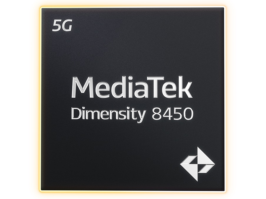 MediaTek Dimensity 8450, 4 nm süreci kullanılarak üretilen akıllı telefonlar için ARM tabanlı bir SoC (çip üzerinde sistem). Performans açısından işlemci üst sınıfta yer alıyor ve 5G SA dahil tüm mevcut mobil iletişim standartlarını destekliyor. Eski ile karşılaştırıldığında Mediatek Dimensity 84008450 de aynı özellikleri sunuyor.