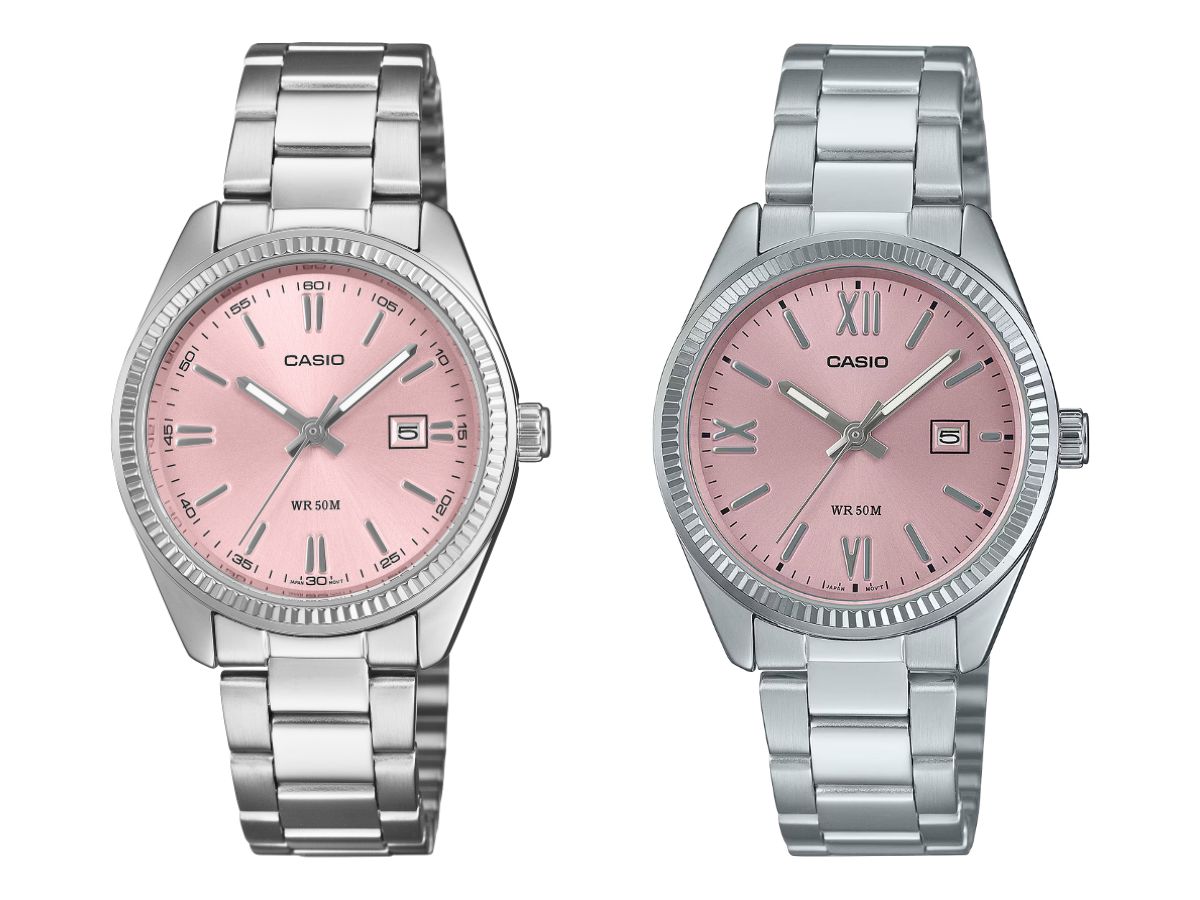 Casio'nun yeni LTP-1302PD-4AV modeli, gümüş renkli indeksleri ve ibreleri olan pastel pembe sunray kadrana sahiptir. Bunlar, 34,5 x 30,2 x 8,7 mm (~1,36 x 1,19 x 0,34 inç) ölçülerindeki gümüş tonlu krom kaplama kasayla uyumludur. Bu model ayrıca paslanmaz çelik bileziğe ve yivli çerçeveye sahiptir.