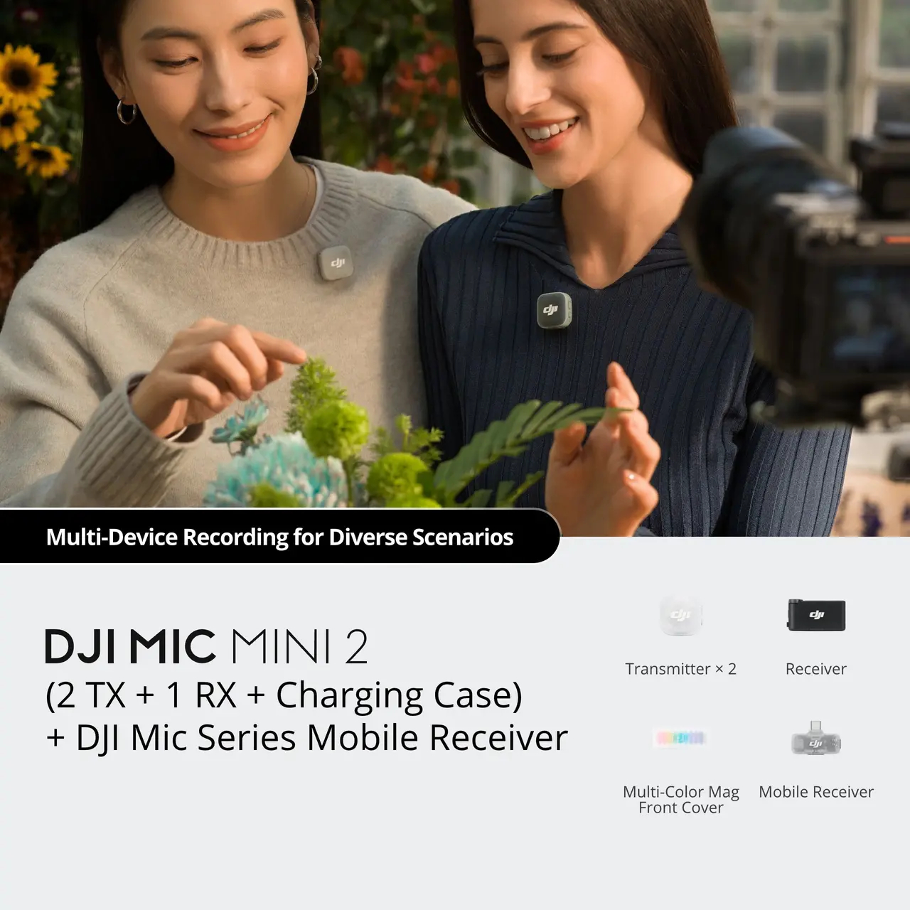 Örneğin DJI, Mic Mini 2'ye manyetik olarak takılan renkli ön paneller ekledi. Sonuç olarak, yeni Mic Mini bir önceki modele göre %10 daha ağır. Ayrıca, Mic Mini 2'nin vericisi Mic Mini'nin eşdeğerine göre %20 daha hızlı şarj oluyor. Ayrıca DJI, bir verici ve bir alıcıya uyan bir mobil şarj çantası sunuyor.
