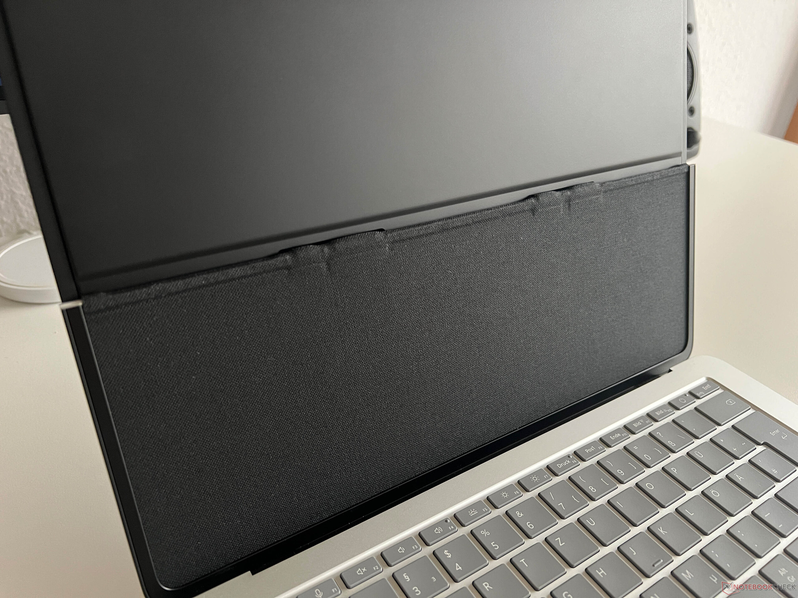 Sıcaklık ölçümlerimiz soğutma çözümü sorununu ortaya koyuyor. Hafif iş yükleri sırasında her şey yolunda, ancak fanlar ana ünitenin ön tarafında yer aldığından avuç içi dinlenme alanı yük altında hızla ısınıyor. Bu davranışı eski modelden zaten biliyoruz, ancak Surface Laptop Studio 2'deki sıcaklıklar daha yüksek. Avuç içi dinlenme alanında yaklaşık 40 °C ölçtük, bu da metal yüzeylerle birlikte hızlı bir şekilde rahatsız edici. Kasanın geri kalanının daha serin kalması gerçekten yardımcı olmuyor. Fan çıkışlarının iki tarafın ön kısmındaki konumu, özellikle harici bir fare kullandığınızda başka bir sorundur.