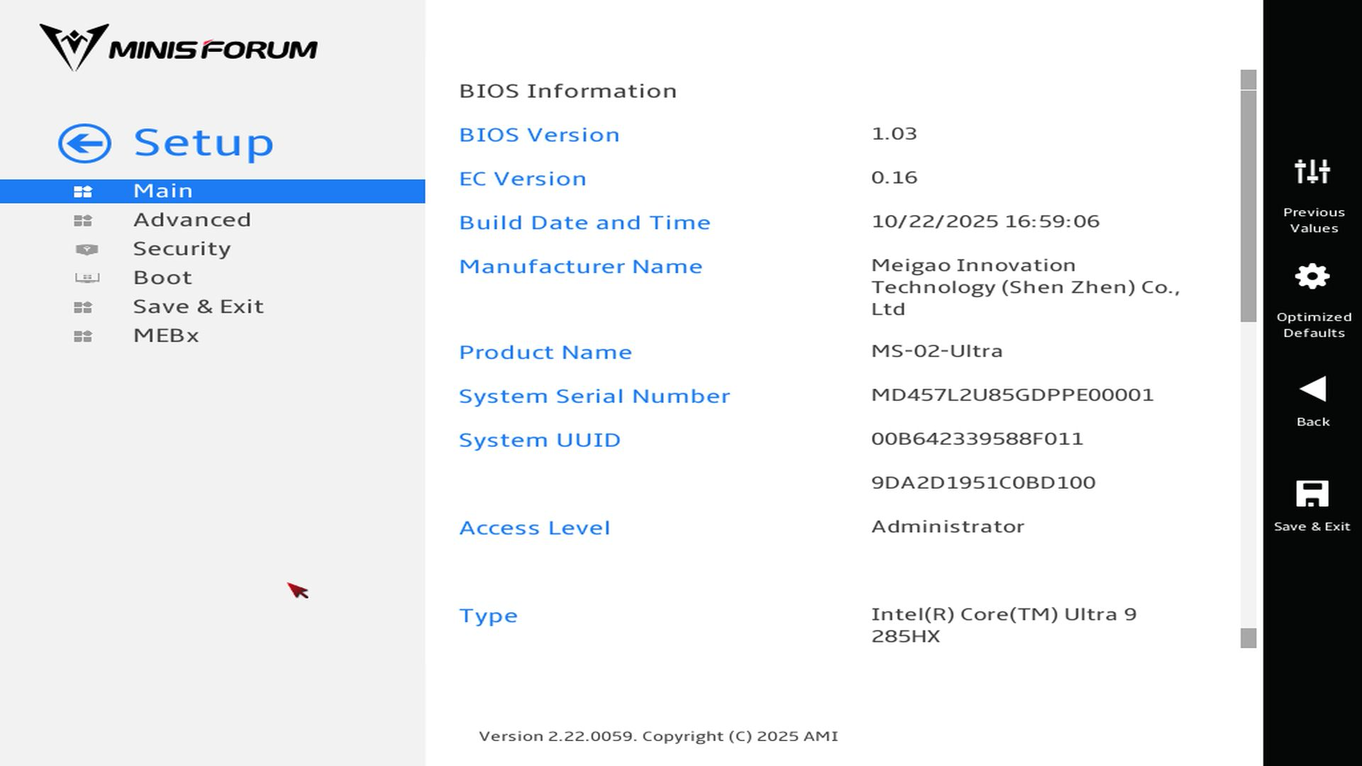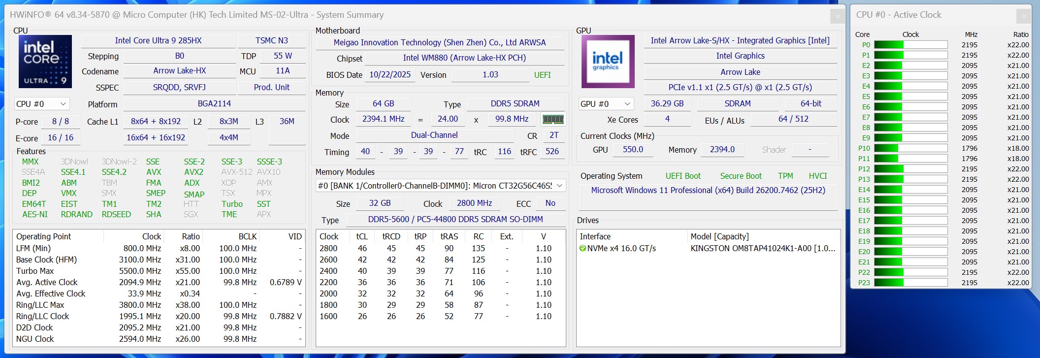 | Minisforum MS-02 Ultra Intel Core Ultra 9 285HX ⎘ Intel Graphics 4-Core iGPU (Meteor / Arrow Lake) ⎘ 64 GB Bellek, 1024 GB SSD | Amazon: 1. $1,499.90 MINISFORUM MS-02 Ultra Works... 2. $1,979.99 MINISFORUM MS-02 Ultra Works... 3. $3,749.99 MINISFORUM MS-02 Ultra Works... Liste fiyatı: 1279€ | 3.5 kg | 225 x 220 x 98 mm | |
