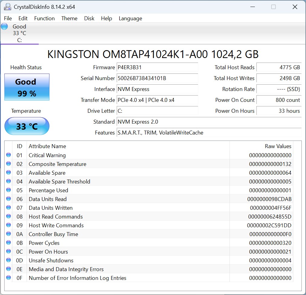 (+) Üst taraftaki maksimum sıcaklık, 35.9 °C / 97 F ortalamasına kıyasla 33.4 °C / 92 F'dir. , Mini PC sınıfı için 21.4 ile 69.5 °C arasında değişir.