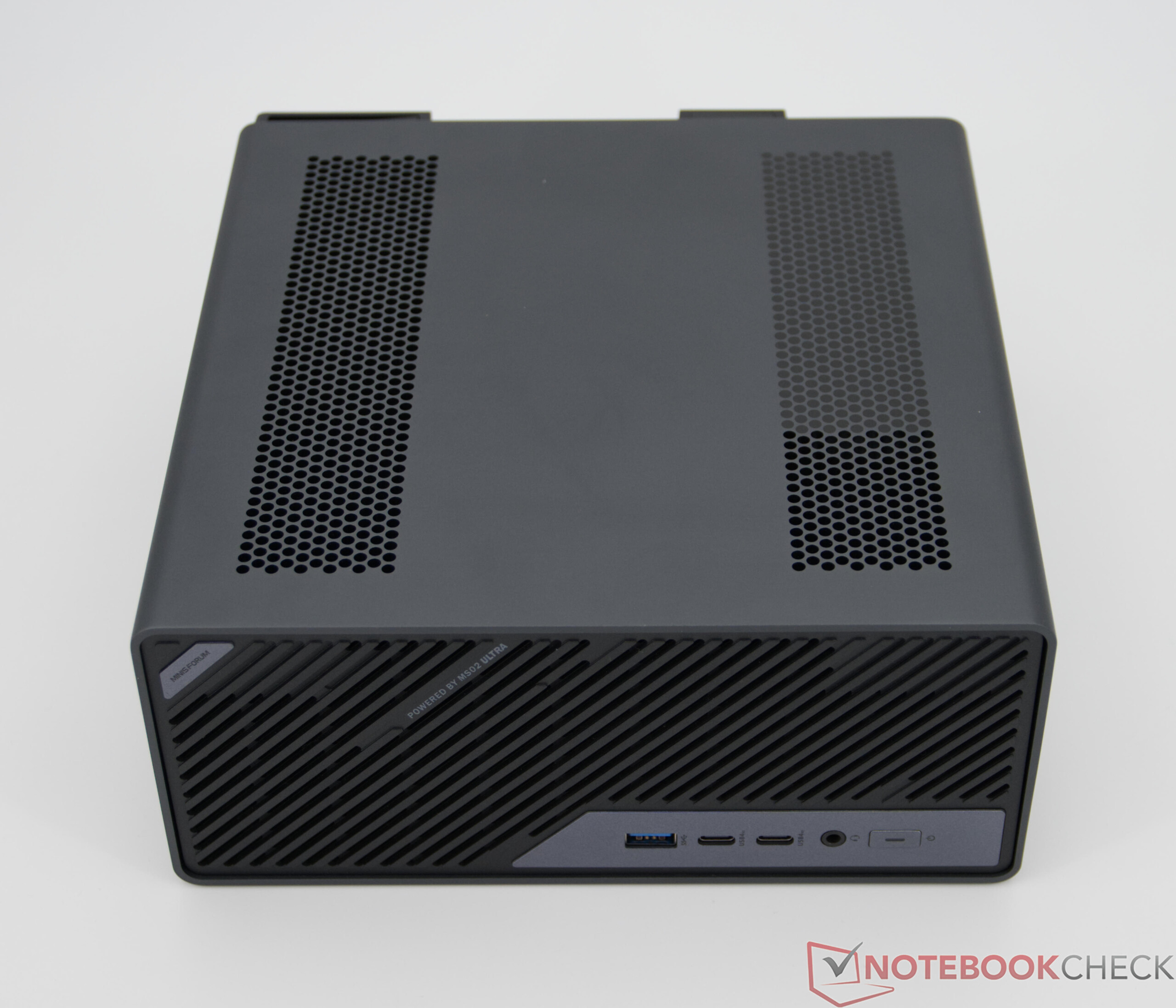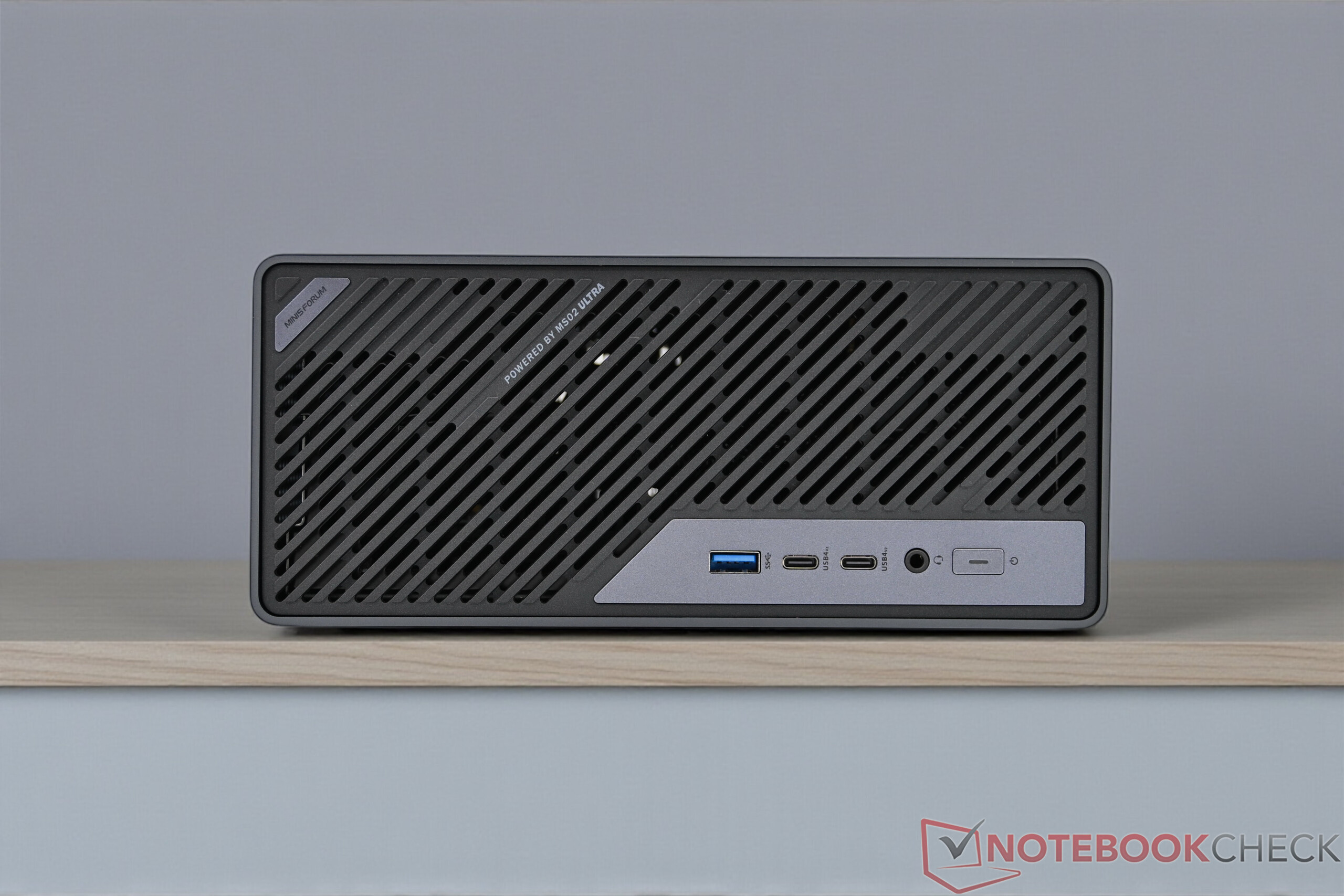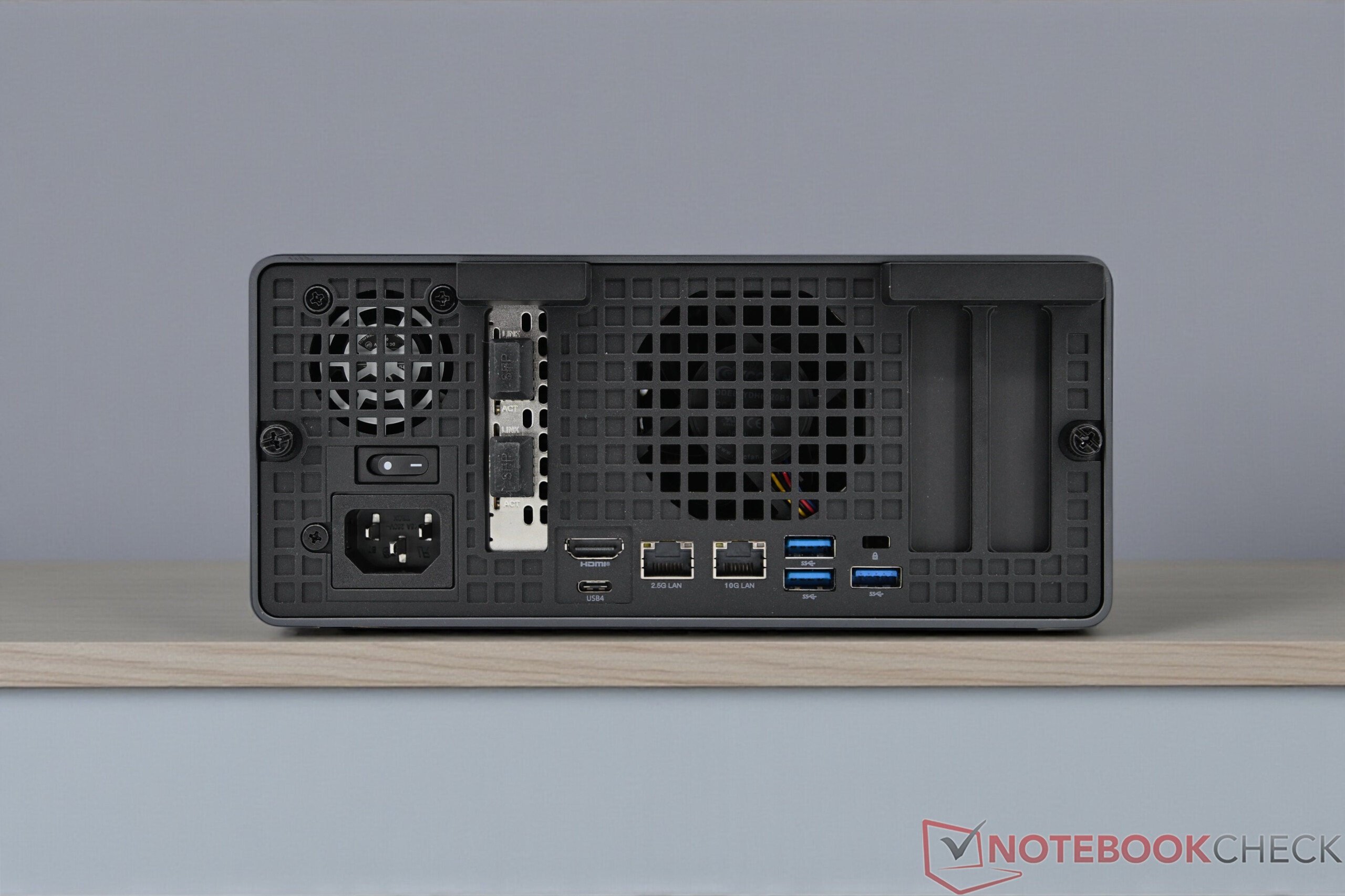 Minisforum MS-02 Ultra, metal ve plastiği uyumlu bir şekilde bir araya getiren ve profesyonel bir izlenim bırakan yüksek kaliteli gövdesiyle etkileyicidir. Mini PC, bağlantılar açısından da son derece cömert bir şekilde donatılmıştır: USB4 V2 dahil olmak üzere birçok modern yüksek hızlı bağlantı noktası, çevre birimleri ve harici uzantılar için maksimum esneklik sağlar. Ağ donanımı özellikle dikkat çekicidir: 2,5 Gigabit ve 10 Gigabit LAN'a ek olarak, sistem 25 GbE'ye kadar aktarım hızları sağlayan iki SFP+ bağlantı noktasına sahiptir. Kompakt sistem ayrıca özel bir grafik kartının kompakt bir SFF formatında kurulmasına da olanak tanır.