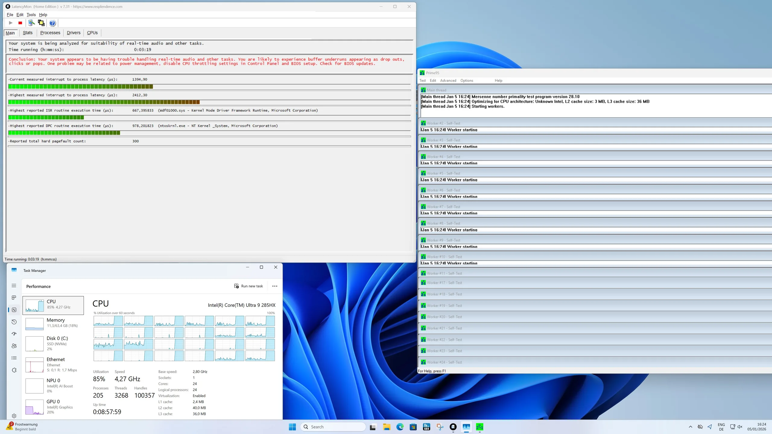 Ile donatılmıştır Intel Core Ultra 9 285HX minisforum MS-02 Ultra, iş istasyonu olarak kullanımını destekleyen muazzam bir bilgi işlem gücüne sahiptir. AMD Ryzen AI Max 395+ veya AMD Ryzen 9 9955HX'e çarpıcı bir mesafede bulunan test örneğimiz, yalnızca küçük bir farkla yenilgiyi kabul etmek zorunda. Güçlü soğutma ünitesi 100 watt'a kadar sürekli güç tüketimine olanak tanıyor, ancak kısa süreler için 130 watt'a kadar çıkılabiliyor.