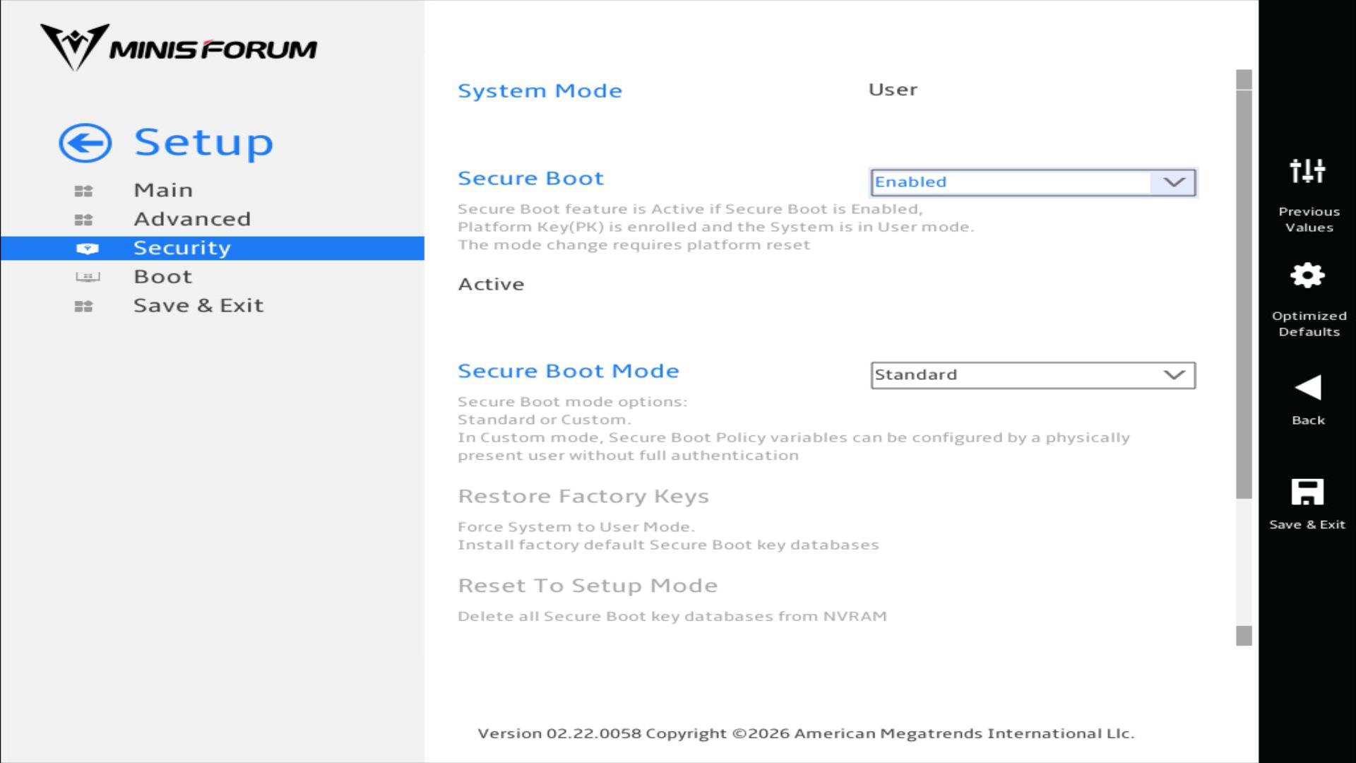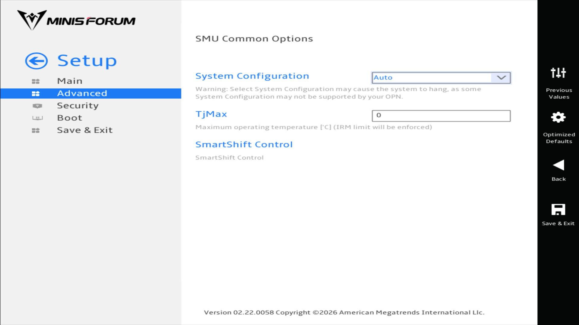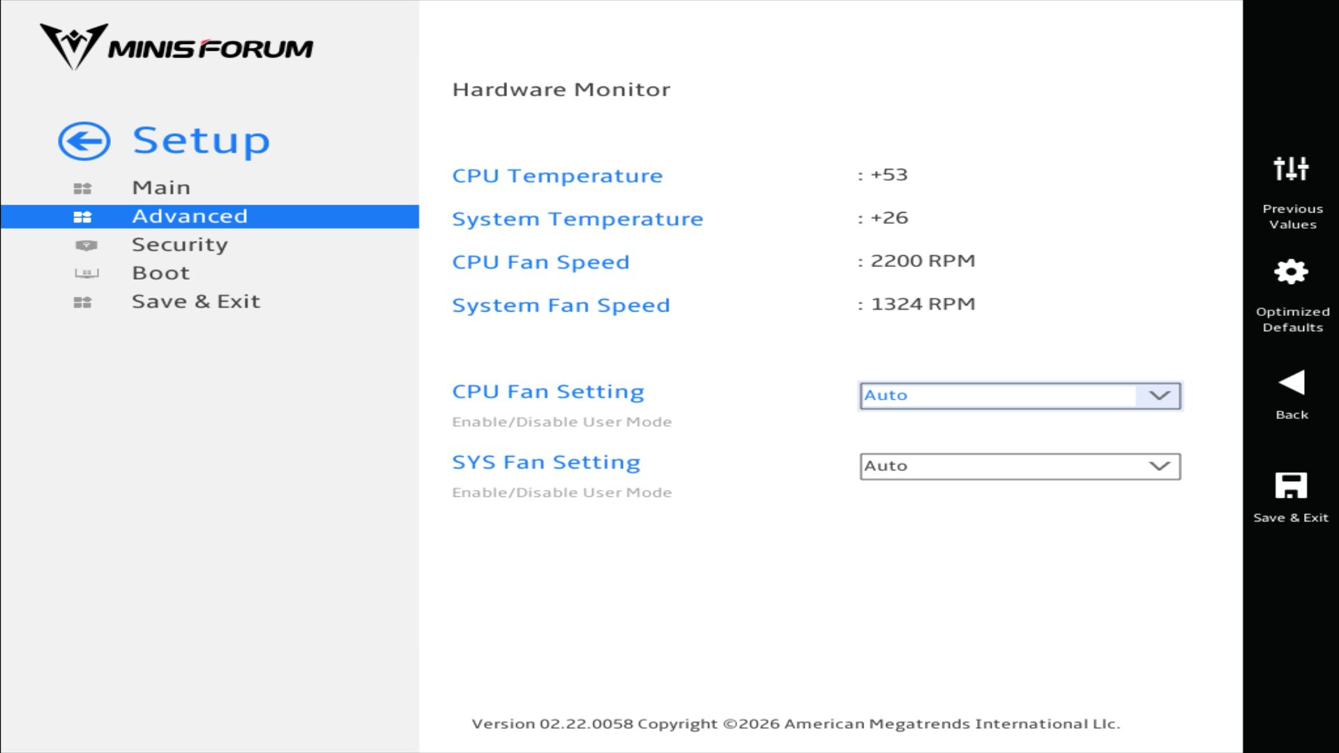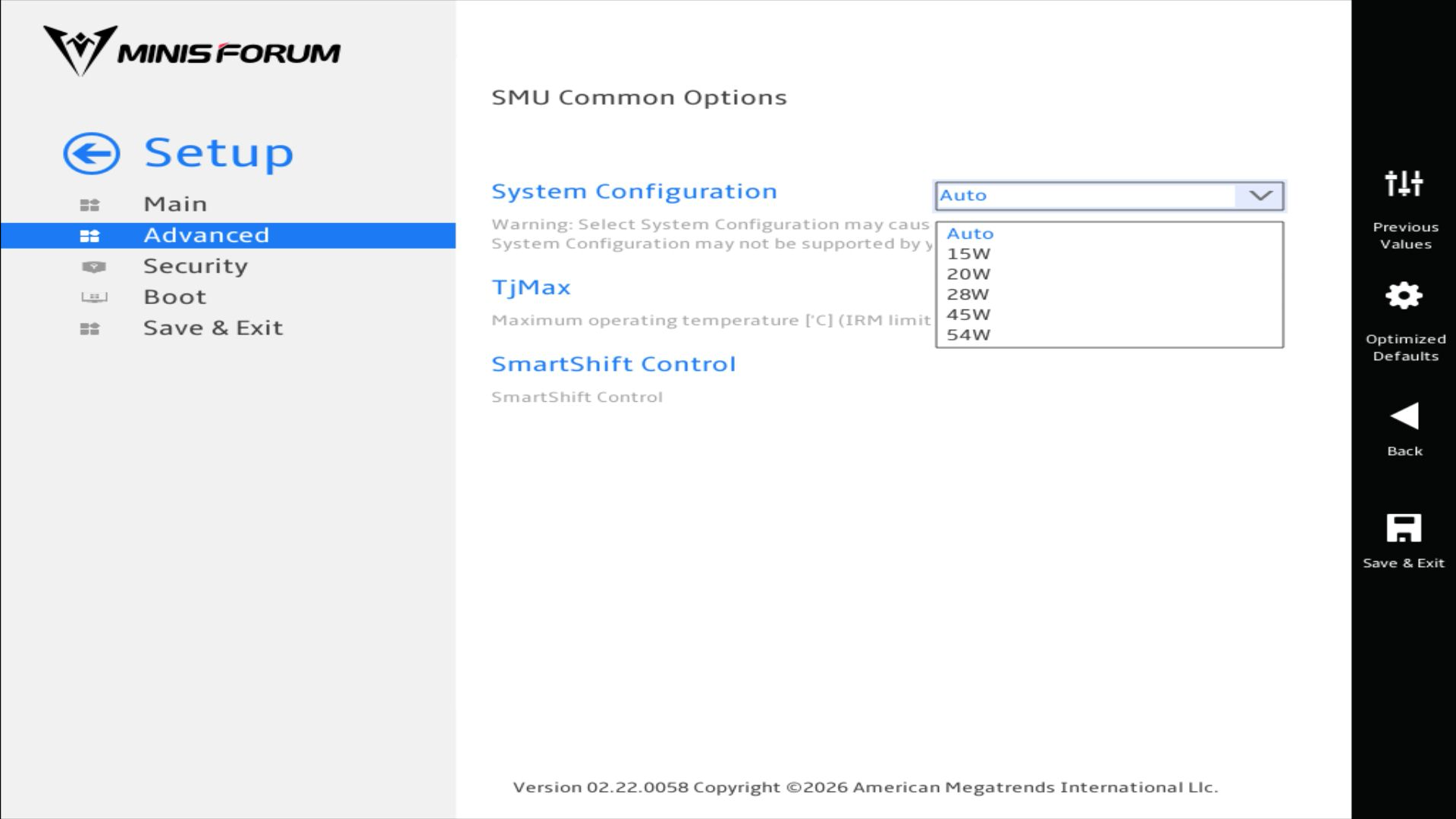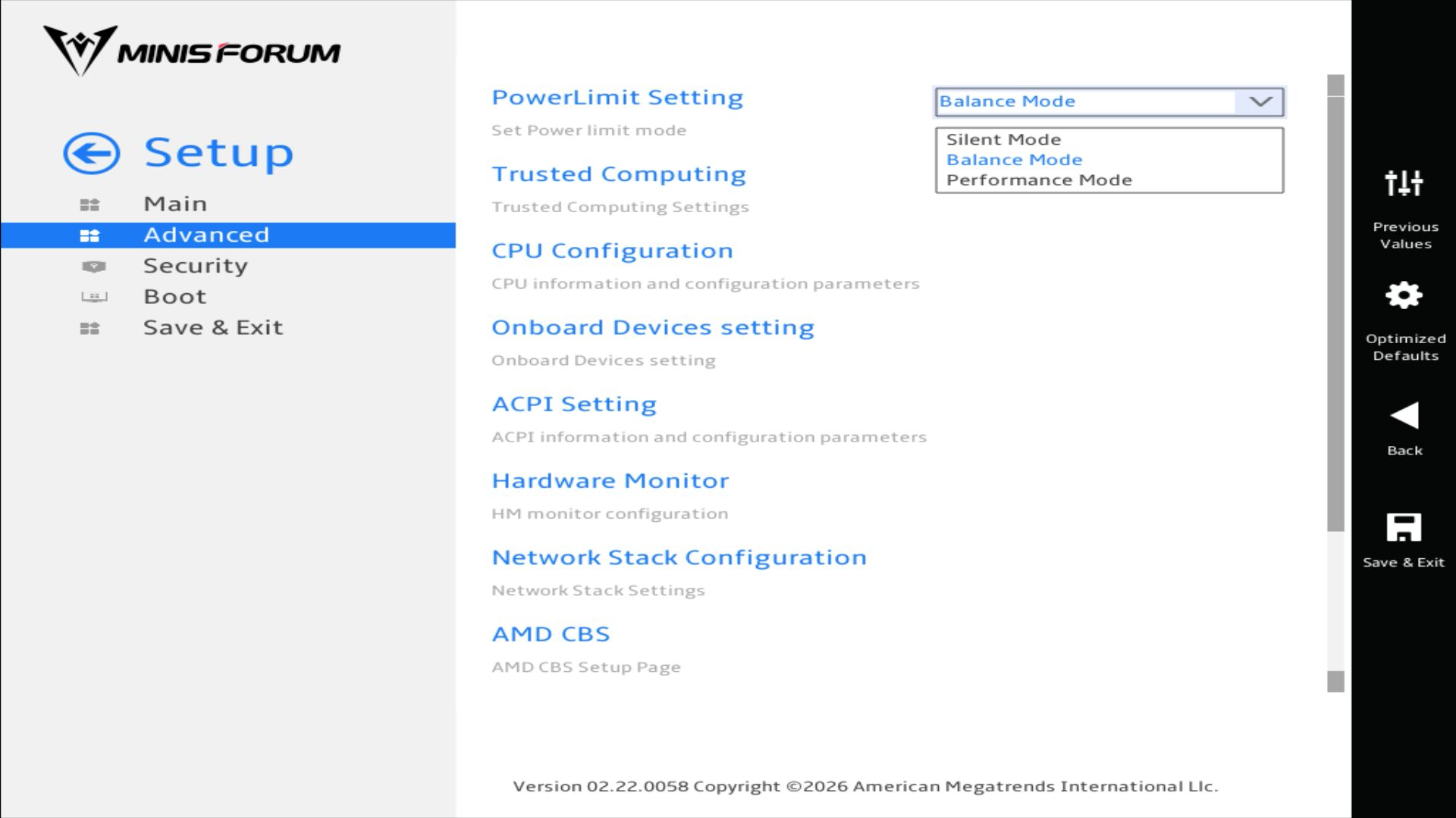 Tüm kıyaslamalar fabrika ayarlarında gerçekleştirilmiştir. Minisforum, AMD Ryzen AI 9 HX 470'in performans profilinin BIOS'ta ayarlanmasına izin verir, ancak testler fabrika ayarlarında "Otomatik" ayarıyla gerçekleştirilmiştir.