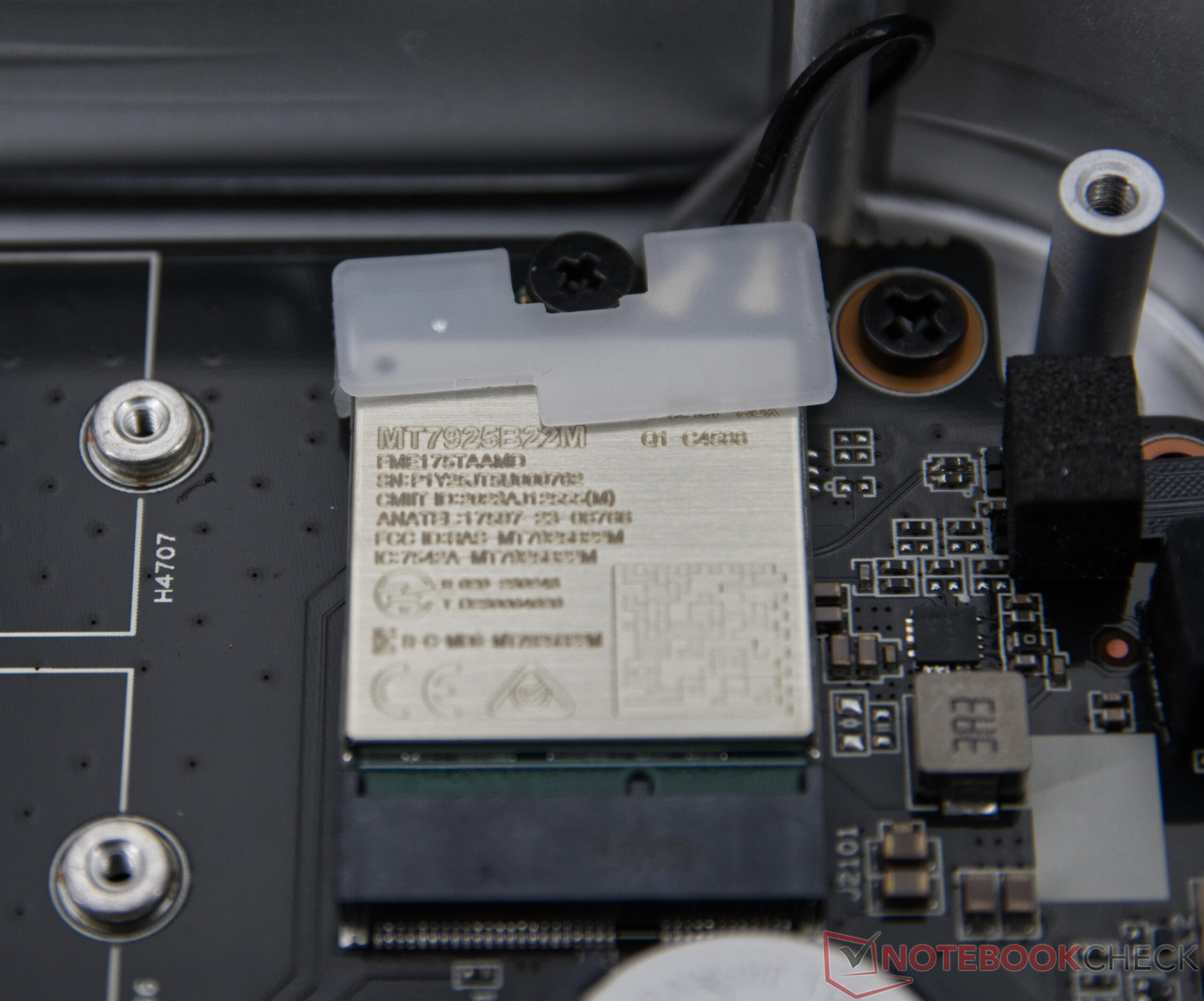 Minisforum AI X1 Pro-HX470'in bakımı nispeten basittir: birkaç vidayı gevşettikten sonra alt taraf çıkarılabilir. Ancak RAM ve SSD'ye erişmek için birleşik güç kaynağı ve hoparlör ünitesi çıkarılmalıdır - kısa kablolar nedeniyle burada dikkatli olunmalıdır. RAM, WLAN modülü ve SSD değiştirilebilir veya genişletilebilir.