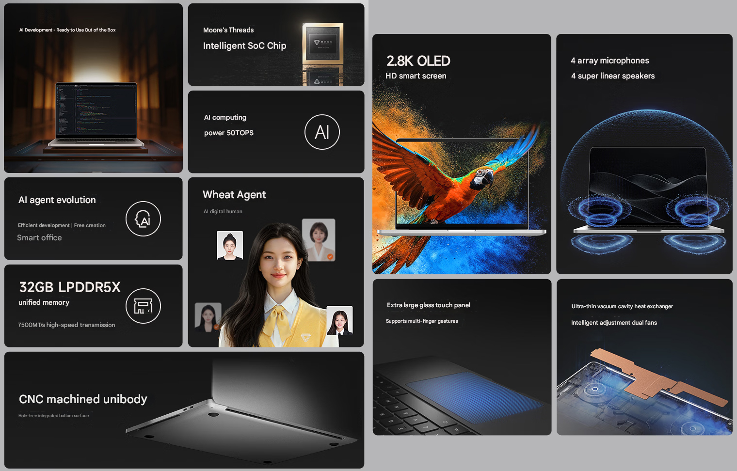 Moore Threads yeni bir premium dizüstü bilgisayar olan MTT AIBook'u tanıttı. Marka, CPU, NPU ve GPU'dan oluşan Çin yapımı bir SoC olduğunu iddia ediyor.