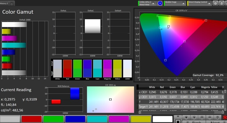 0.29 cd / m²'lik yüksek siyah değeri sayesinde ekran içeriği zengin kontrast ve canlıdır. Tersine, bir akıllı telefon ekranı için yine de tatmin edici olsa da, renk doğruluğu özellikle yüksek değil. Bu arada, IPS panelinde bulunan hafif mavi tonu görmezden gelmek daha zordur ve aşırı soğuk bir ekranda tezahür eder.