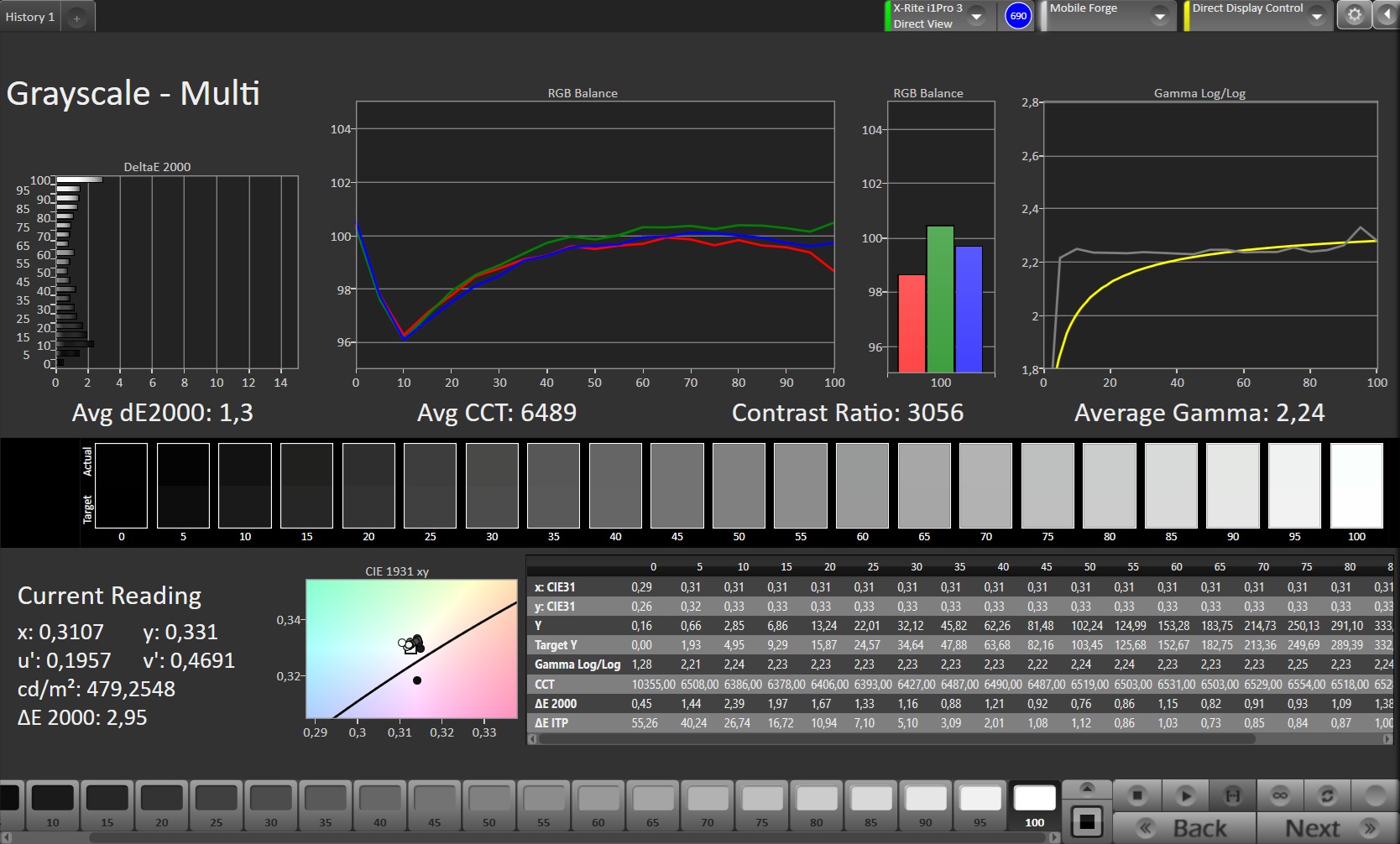 ΔE Greyscale Calman: 1.3 | ∀{0.09-98 Ø5}