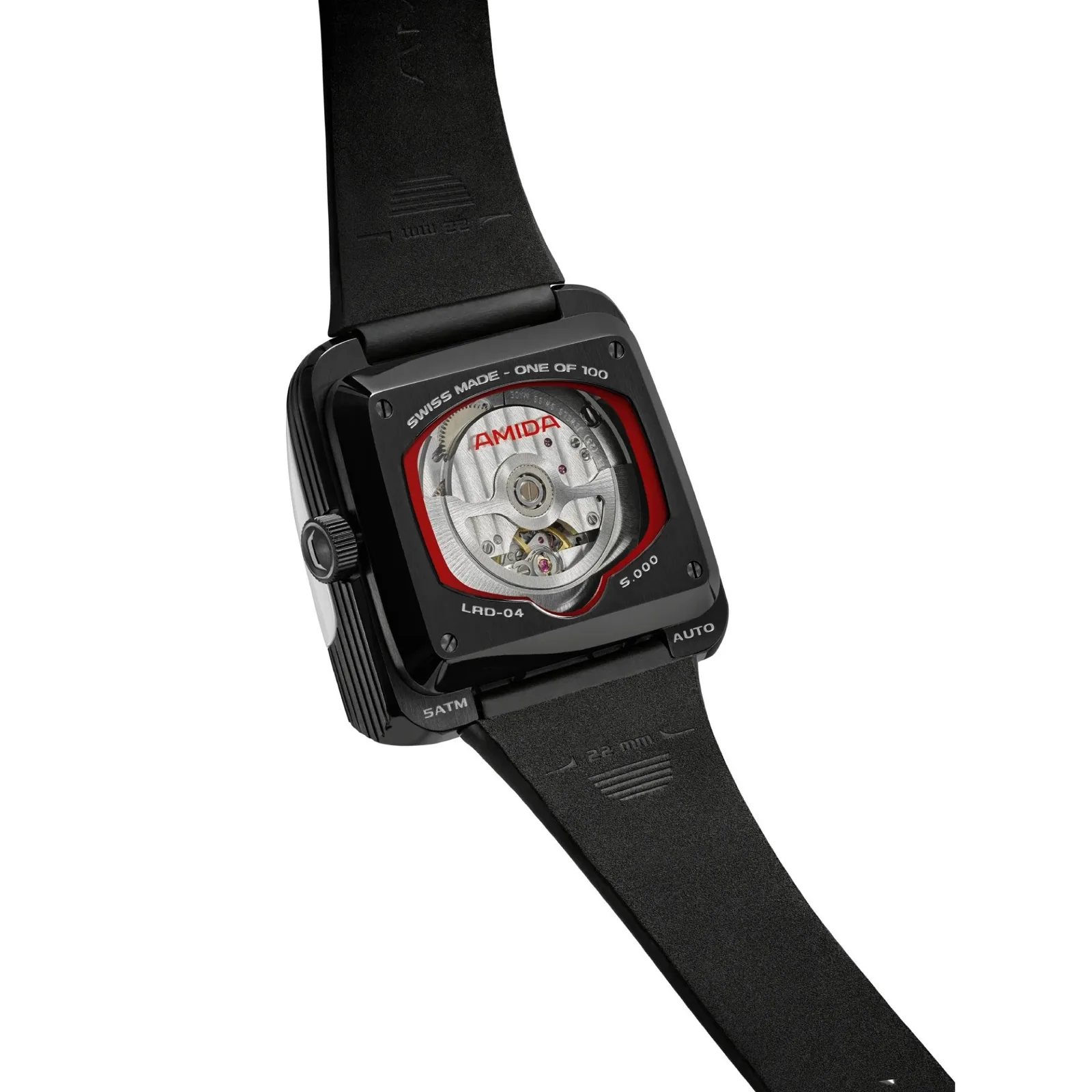 Kayış, astronotların kullandığı gibi beyaz deri ile Velcro tutturucuyu bir araya getirerek kayışın uzunluğunun kademesiz olarak ayarlanabilmesini sağlıyor. Arka kısım paslanmaz çelikten yapılmıştır ve 23 yakutla donatılmış olan ve yalnızca 44 saatte bir sarılması gereken Soprod Newton P092 mekanizmasının bir görüntüsünü sunar. Neredeyse kare şeklindeki kasanın kenar uzunluğu 39 milimetre, yüksekliği 15,6 milimetre ve ağırlığı 90 gramdır