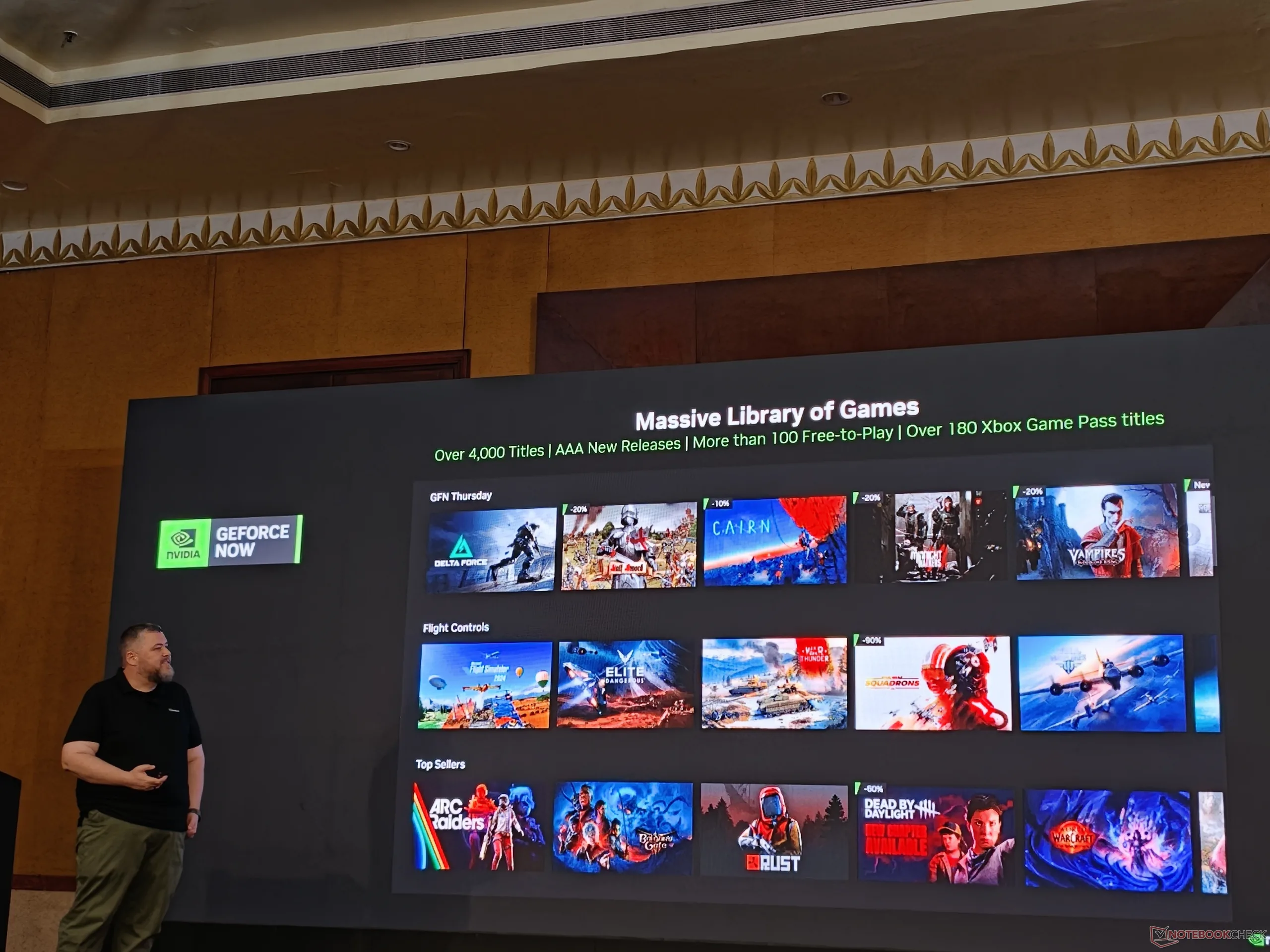 GeForce Now'ın kendisi bir oyun yayıncısı olmasa da, hizmet şu anda Steam, GOG, Epic, EA, Battle.net, Xbox ve Ubisoft Connect üzerinden 4.000'den fazla popüler oyunun akışına izin veriyor.