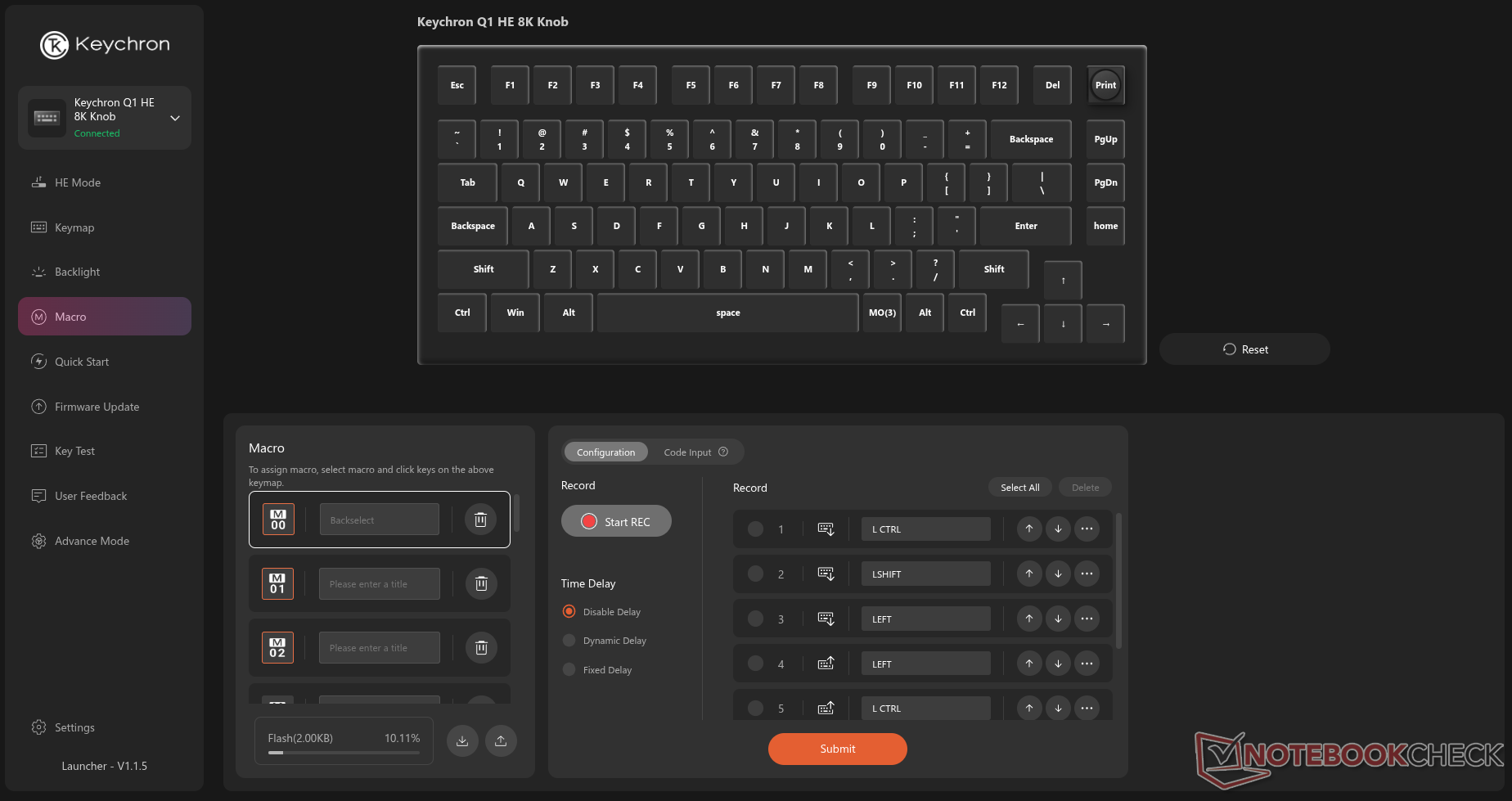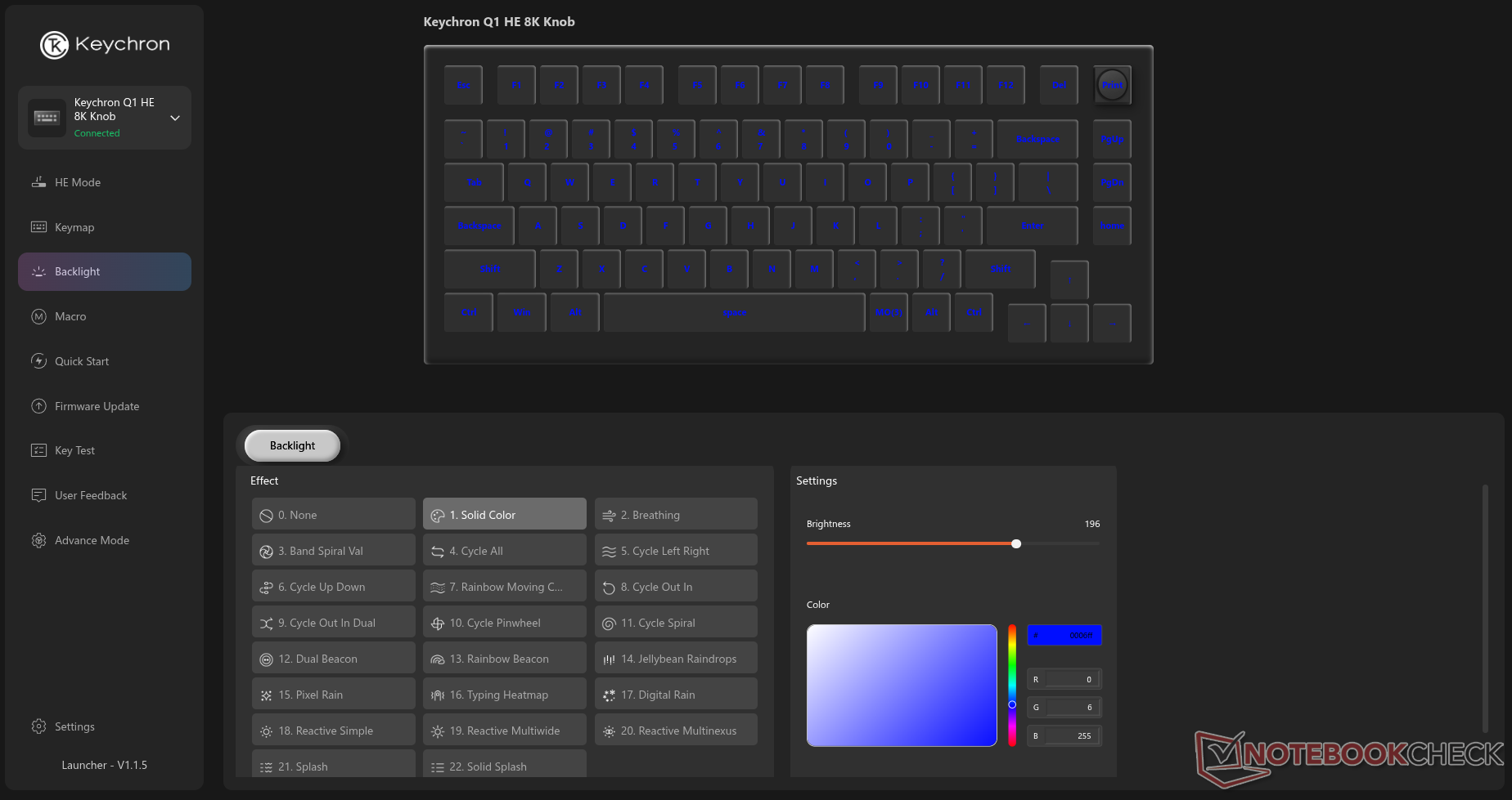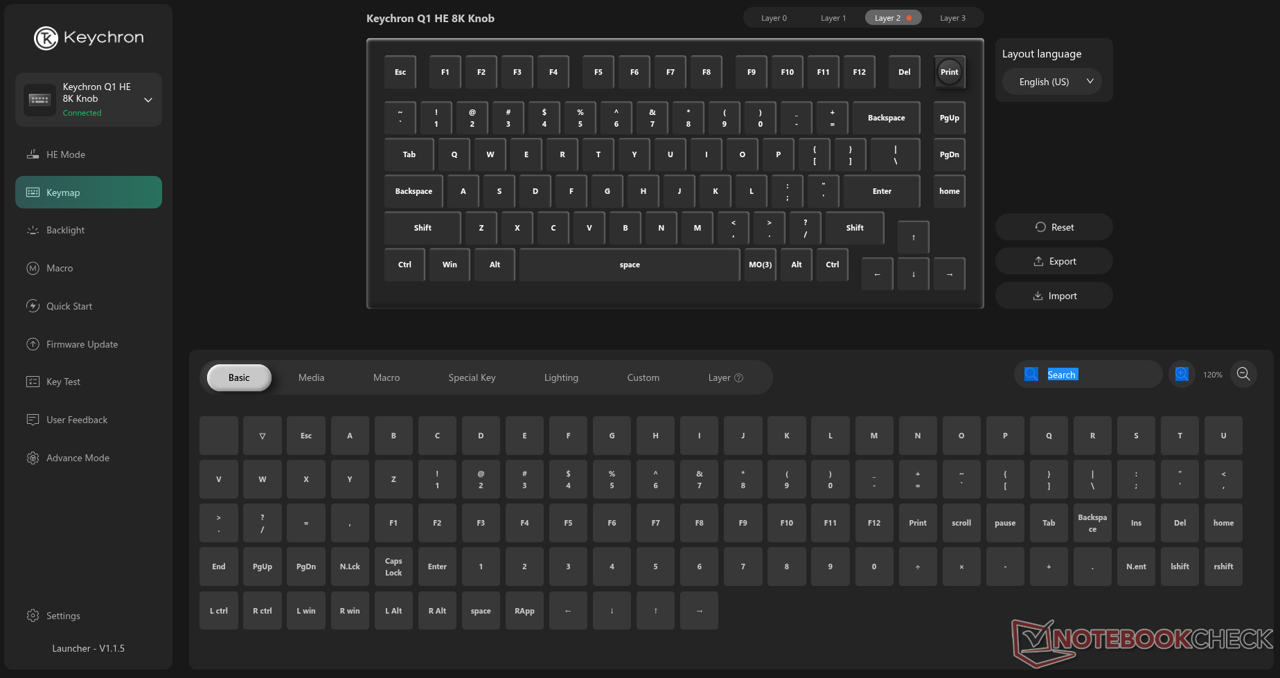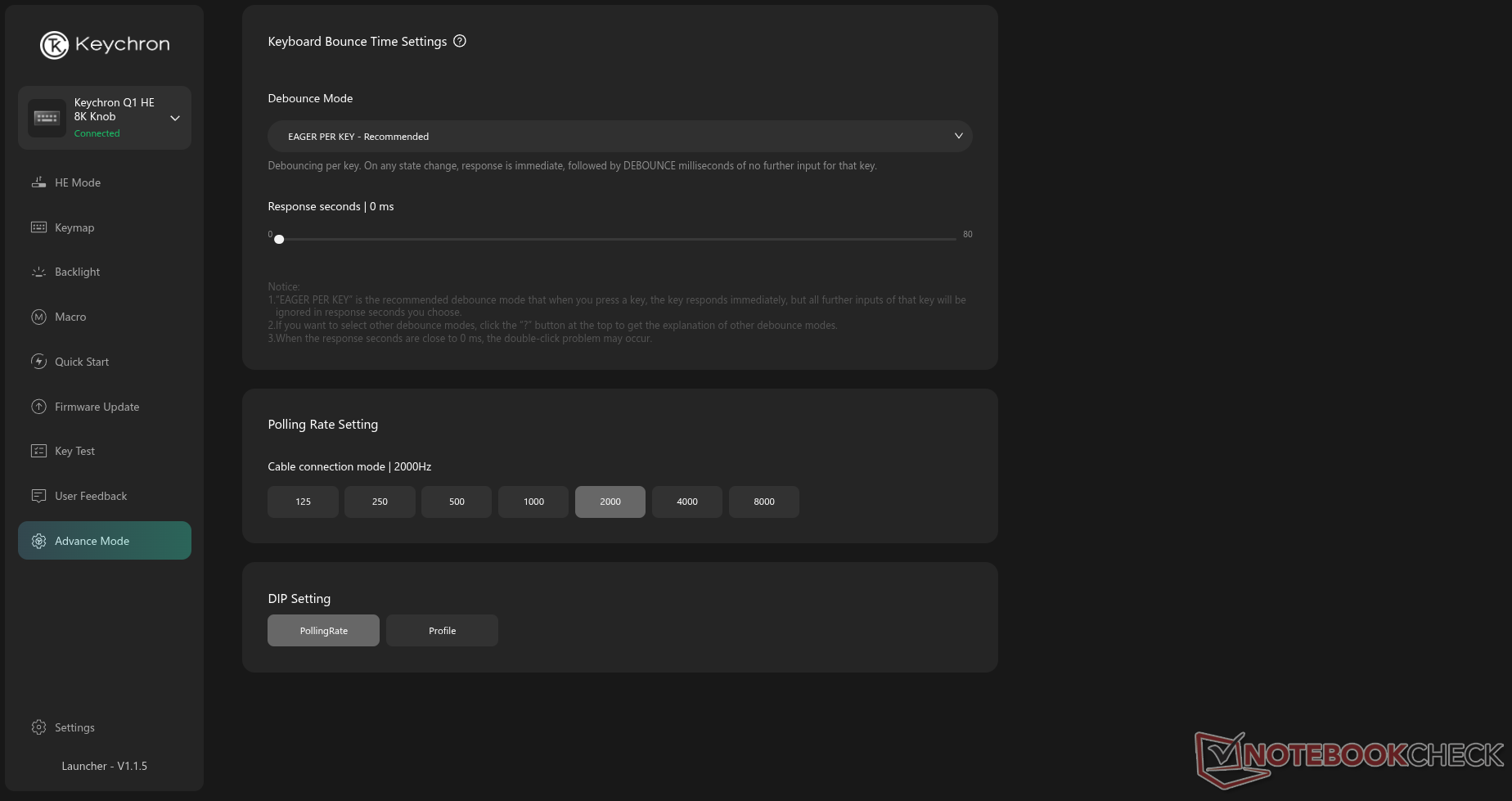 Keychron klavyeleri özelleştirmek için kullanılan yazılım paketi Keychron Launcher da Q1 HE 8K lansmanı için tam zamanında güncellendi ve sunulan çeşitli Hall efektli oyun özellikleri için daha temiz bir kullanıcı arayüzü sunuyor. Keychron ayrıca Q1 HE 8K'nın yerleşik belleğini 1 MB'a yükseltti, bu da önemli ölçüde daha fazla makro ve özelleştirme seçeneği depolayabileceği anlamına geliyor.