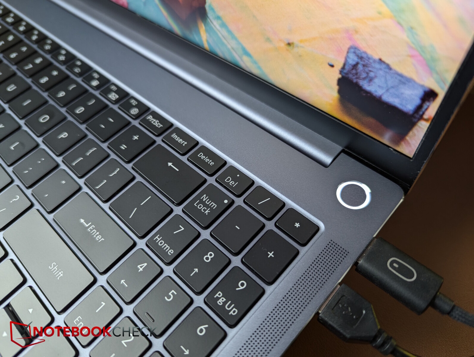 Sadece dizüstü bilgisayarın alt kısmında, ekranın ortasında gerçekten ısınıyor. Burada yaklaşık 50 °C'lik bir sıcak nokta tespit ettik. Diğer her yerde, sıcaklık gelişimi maksimum 43 °C'de ılımlı kaldı ve avuç içi dayanakları önemli ölçüde daha serin kaldı. Ancak, küçük USB-C güç kaynağı 56 °C'ye kadar ısındı.