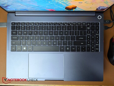 Klavyenin düzeni son derece düzenli ve N16 Pro'dan farklı. Sağ tarafta, küçük tuşlara sahip bir sayısal tuş takımı, diğer oldukça büyük tuşların yanına sıkıştırılmış. Ne yazık ki dikey ok tuşlarının yüksekliği yarıya inmiş. Dizüstü bilgisayar standart olarak Amerikan klavye düzeniyle geliyor, ancak diğer dilleri konuşanların endişelenmesine gerek yok, çünkü üretici çeşitli diğer diller için etiketleme etiketleri içeriyor.