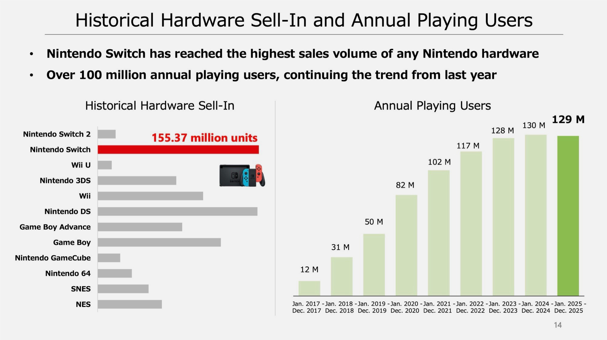 Son nesil bir konsol olmasına rağmen orijinal Switch, geçen yılın aynı dönemine kıyasla %66'lık bir düşüşle 3,25 milyon adet satmayı başardı. Nintendo, 37,93 milyonu Switch 2 için özel olarak optimize edilmiş olmak üzere toplam 146,9 milyon oyun sattı.