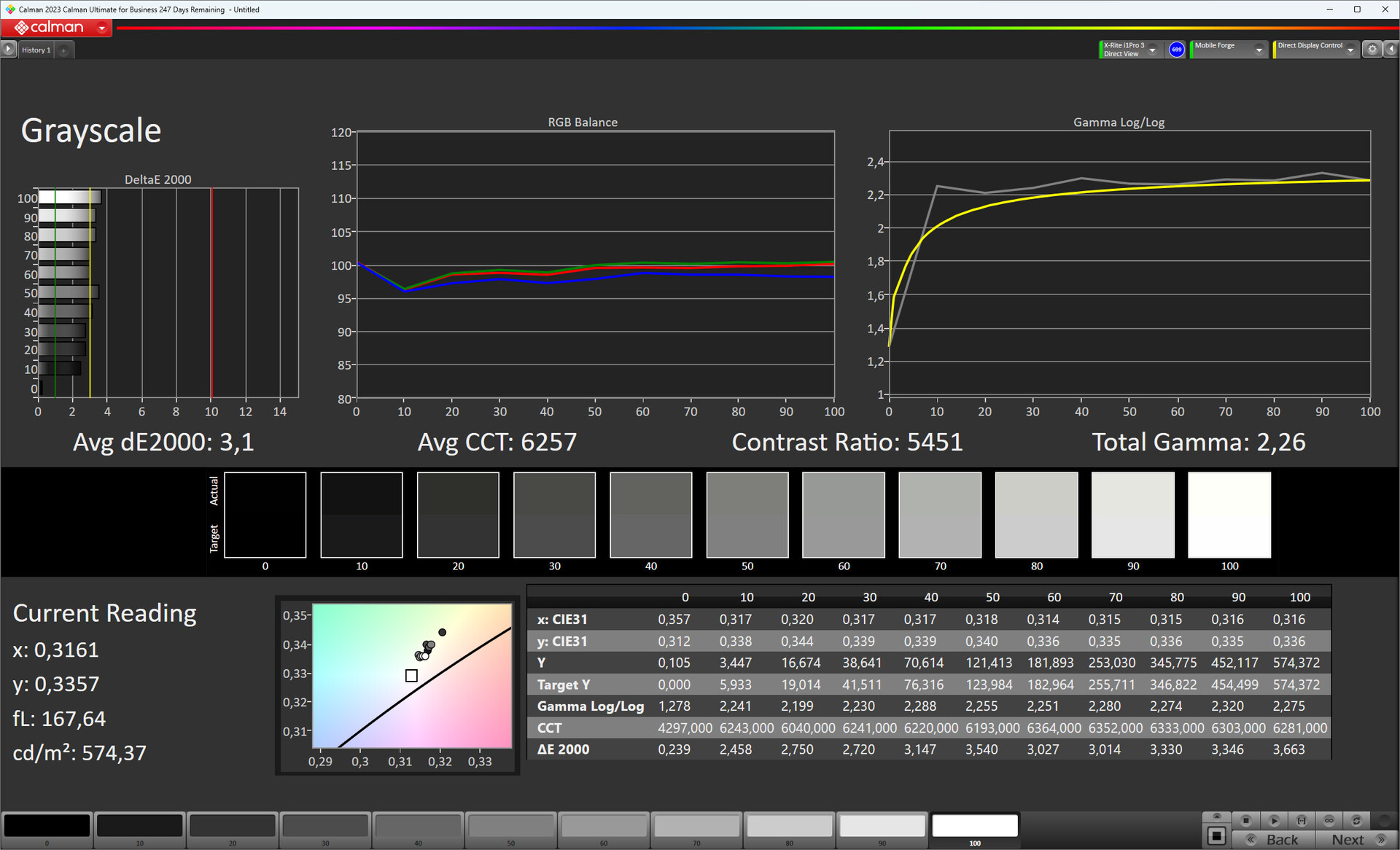 ΔE Greyscale Calman: 3.1 | ∀{0.09-98 Ø5}