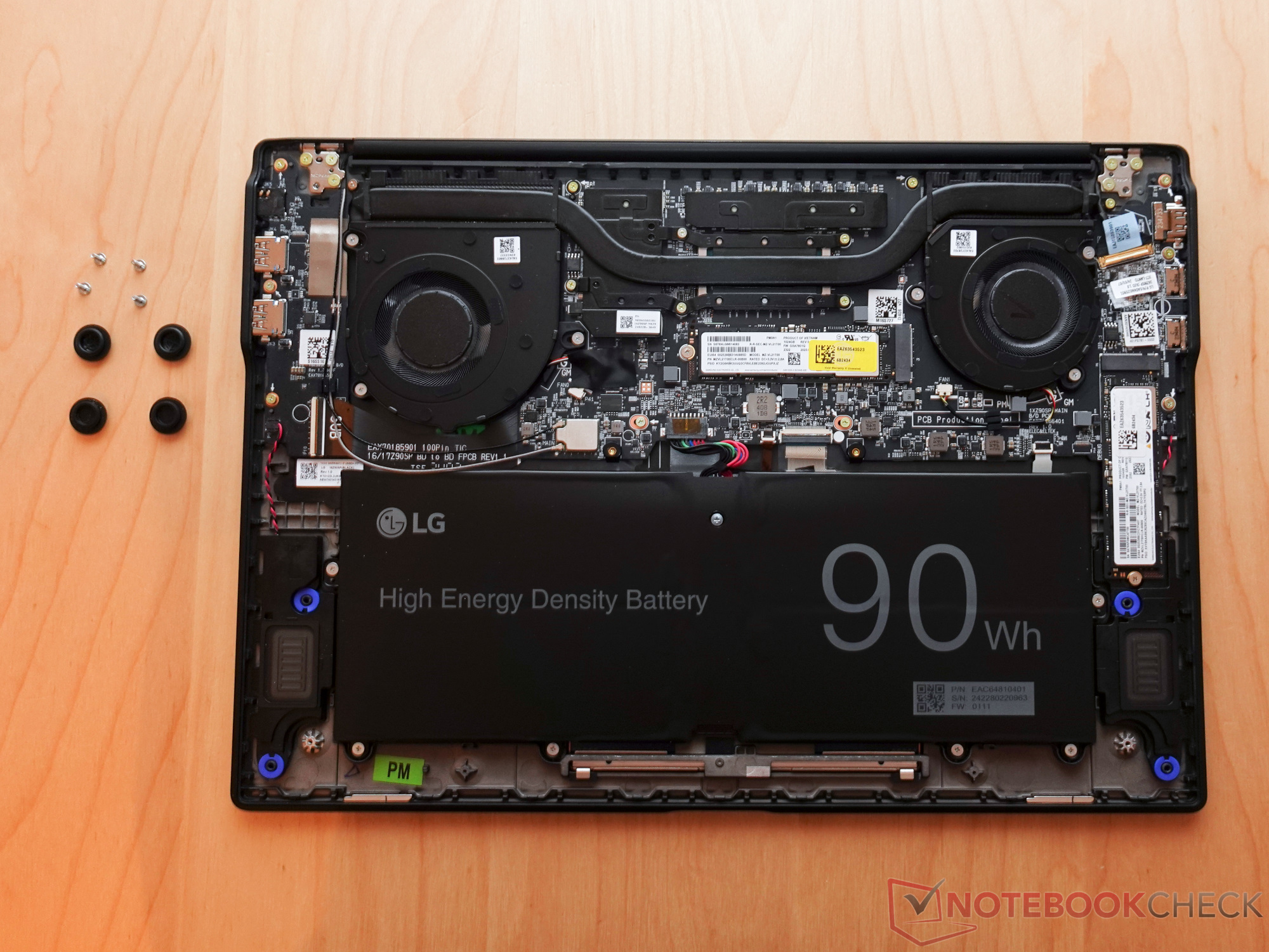 LG Gram Pro 16'yı sökmek için önce dört lastik ayağını çıkarmanız gerekir. Diğer birçok LG cihazının aksine, bunlar yapıştırılmamıştır. Altındaki dört PH0 vidası hızlı bir şekilde çıkarılabilir ve taban plakasını çıkarmak plastik bir alet kullanarak çok zor değildir. Yalnızca iki NVMe SSD yükseltilebilir, ancak birçok bileşen hala modülerdir. İlgili yedek parçaları LG'den temin edebilirsiniz. Pil, klavye, ekran ve dokunmatik yüzey değişimlerinin yanı sıra birçok küçük parça için web sitelerine göz atmaya değer.