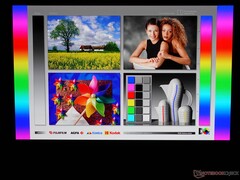 Kutudan çıkar çıkmaz LG Gram Pro 16'nın renk alanı kapsamı ve renk doğruluğu profesyonel kullanıma uygun. Buna rağmen, aynı panele sahip LG Gram Pro 2'si 1 arada biraz daha iyi değerler gösterdi. Buna karşılık, maksimum parlaklığı karşılaştırıldığında biraz daha düşüktü. Bir OLED panelin parlaklık ayarının renk doğruluğu üzerinde önemli bir etkiye sahip olabileceğini sıklıkla tespit ettik.