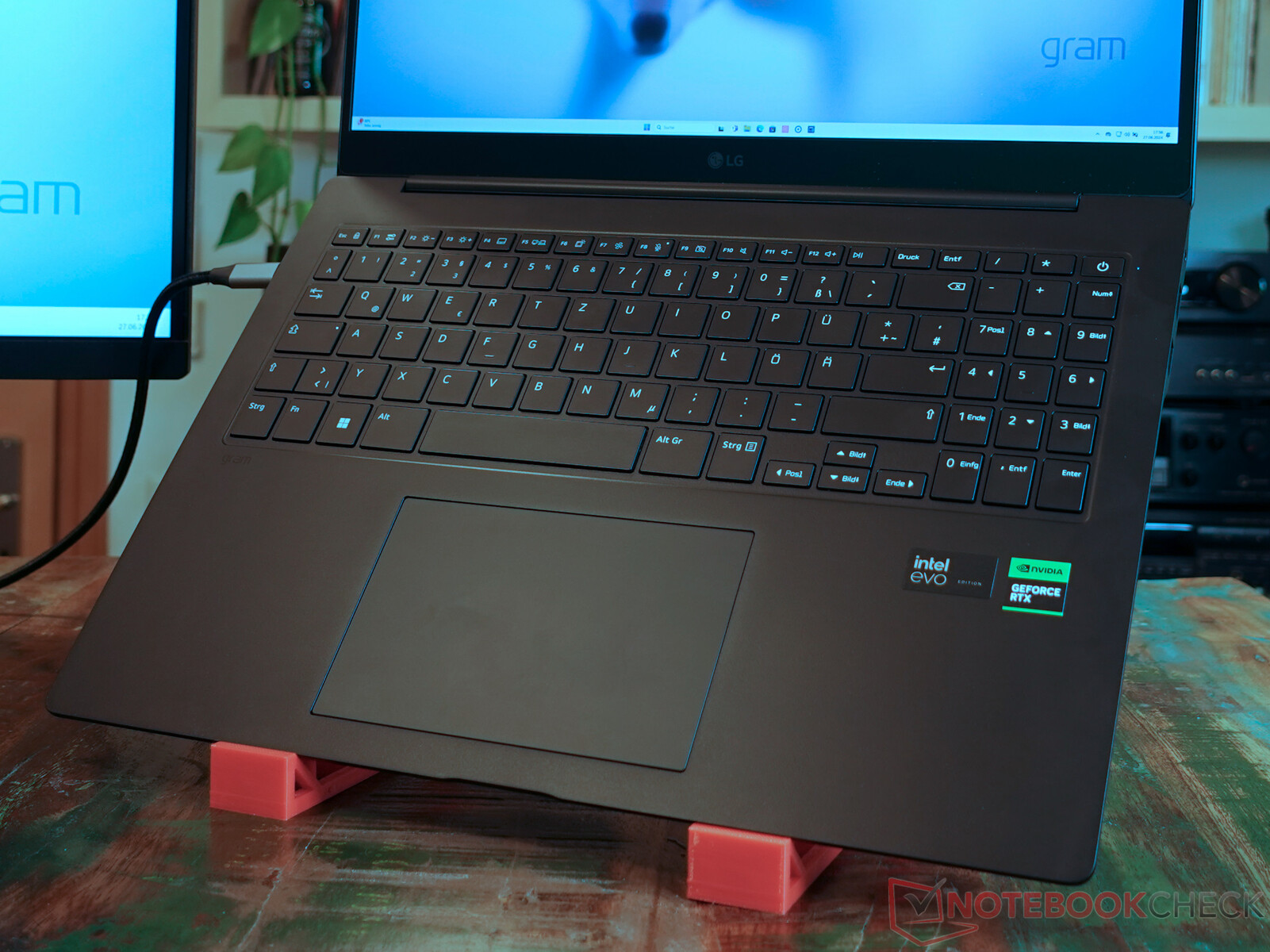 LG Gram Pro'nun tabanı 9 mm kalınlığa sahip. Bu, yüksek bir tuş kaldırma için fazla yer bırakmıyor. Yine de test cihazımızın arkadan aydınlatmalı klavyesinde yazmak oldukça iyi hissettiriyor. Dokunmatiği uygun ve taban biraz esnek olsa bile klavye normal kullanım sırasında ezilmiyor.