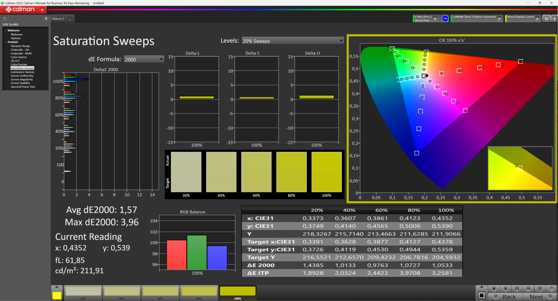 ΔE Greyscale Calman: 1.3 | ∀{0.09-98 Ø5}