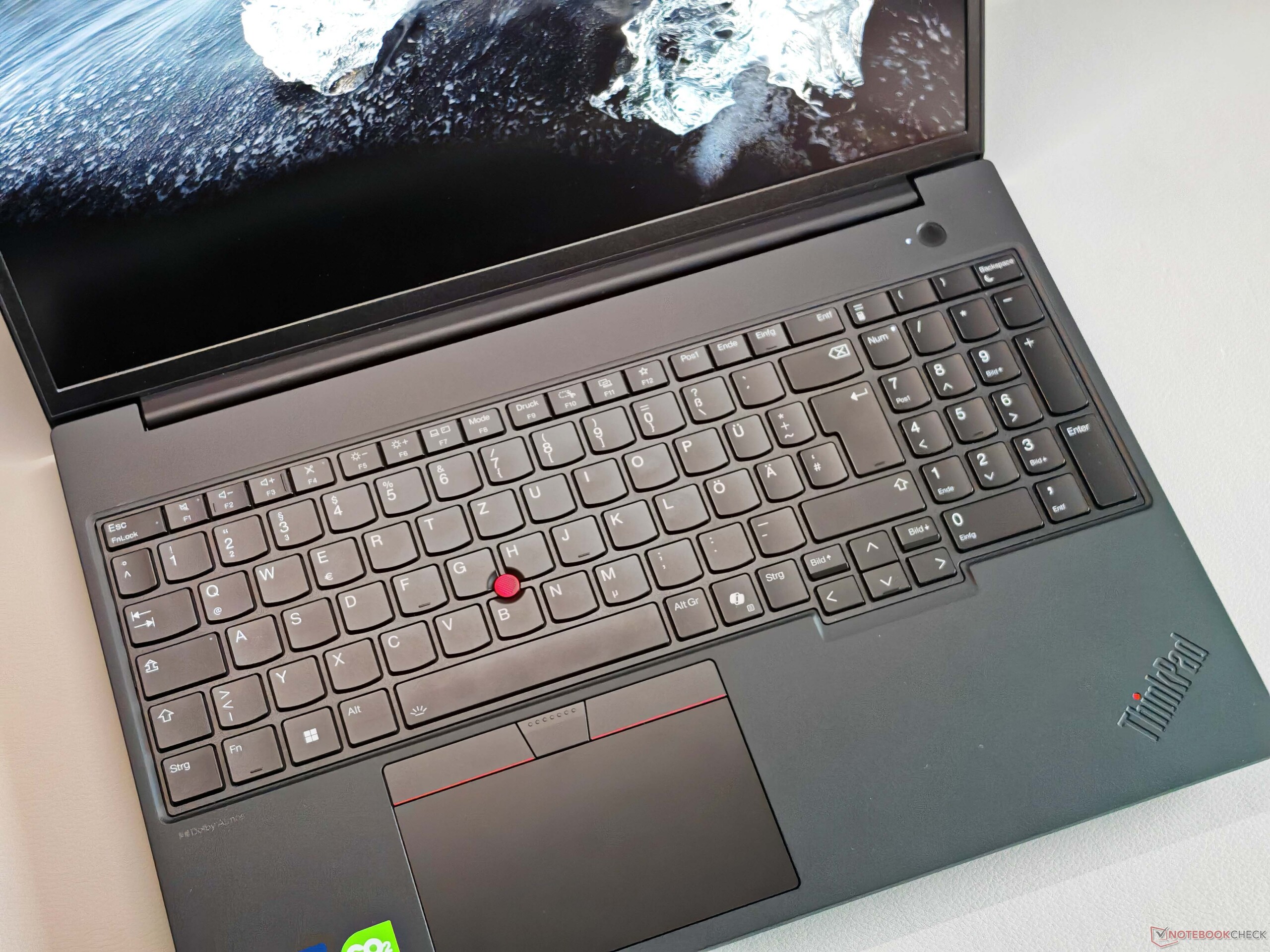 Sayısal tuş takımı da dahil olmak üzere arkadan aydınlatmalı klavye de mevcut ThinkPad standardını karşılıyor, ancak mevcut seride çok daha iyi modeller var (örn ThinkPad P1 16 G8). Genel olarak, yazma hissini rahat ve hassas olarak tanımlayabiliriz, ancak rakipler bunu en az onun kadar iyi yapabiliyor. ClickPad (11,5 x 6,7 cm/~4,5 x ~2,6 inç), özel TrackPoint düğmeleri nedeniyle modern standartlara göre oldukça küçüktür, ancak çalışma mükemmeldir ve alt alandaki mekanik tıklamalar da son derece yüksek kalitededir. Bu TrackPoint düğmeleri için de geçerlidir.