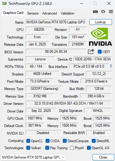 Lenovo LOQ 17IRX10 i7-14700HX, GeForce RTX 5070 Laptop | HP Omen 16-ap0091ng R9 8940HX, GeForce RTX 5060 Laptop | Gigabyte Gaming A16 GA6H i7-13620H, GeForce RTX 5070 Laptop | MSI Crosshair A17 HX D8WGKG R9 8940HX, GeForce RTX 5070 Laptop | SCHENKER XMG Focus 17 M25 i9-13900HX, GeForce RTX 5070 Ti Laptop | |