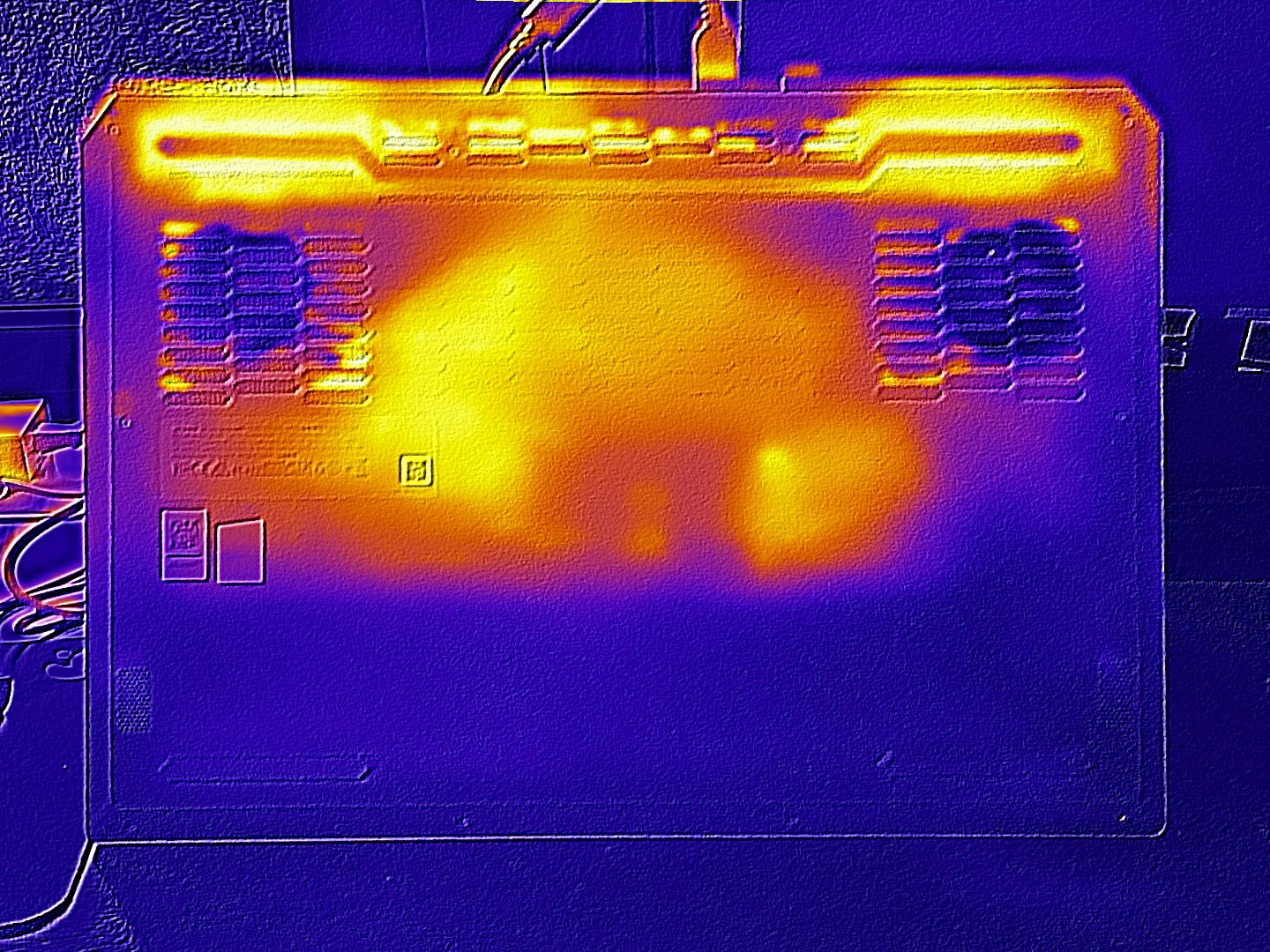 (±) 3: The average temperature for the upper side is 37.4 °C / 99 F, compared to the average of 33.9 °C / 93 F for the class Gaming.