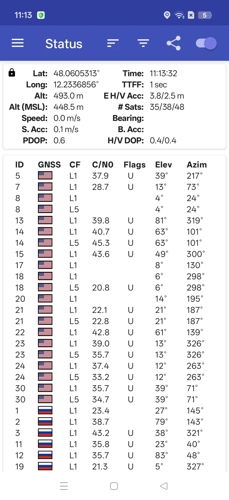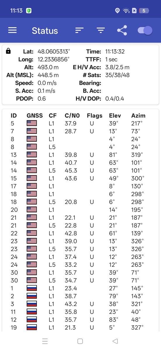 Dışarıda, OnePlus 15 konumumuzu birkaç metreye kadar hızlı bir şekilde belirledi. Konumlandırma için tüm büyük uydu sistemleri mevcut, ancak ne yazık ki cihazda daha da yüksek doğruluk için SBAS yok.