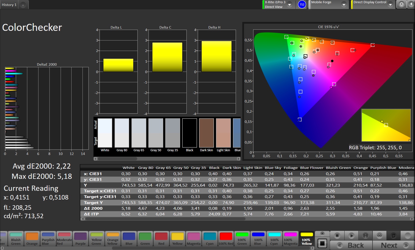 | Colorchecker dE 2000 max. * | 5.18 | 2.6 50% | 3.68 29% | 2.07 60% |