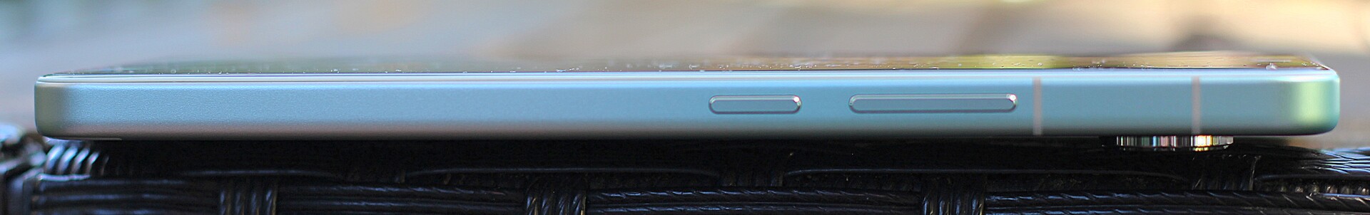 Öndeki çerçeveler çok ince ve teslimat durumunda koruyucu bir ekran kapağı uygulanıyor. OnePlus Nord 4, boyutu göz önüne alındığında 200 gramdan (~7 oz) daha hafif bir telefon olmasına rağmen çok ağır değildir Motorola Edge 50 Pro. Boyutlar sınıf seviyesinde ve sadece 8 milimetre (~0,3 inç) olan kasa kalınlığı özellikle etkileyici.
