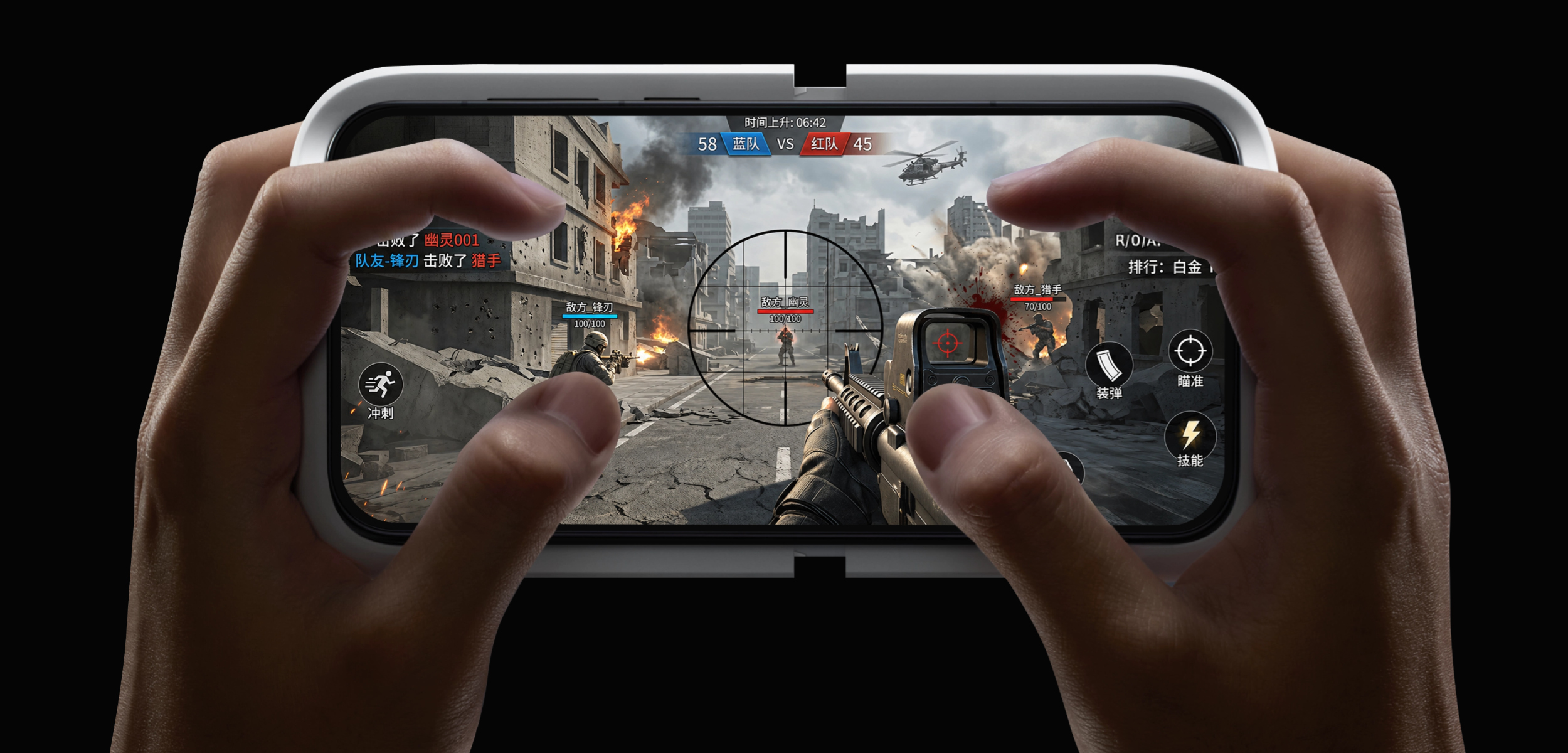 Yukarıdaki ve aşağıdaki görselde görüldüğü gibi OnePlus'ın yeni kontrol cihazı doğrudan Ace 6 Ultra'nın USB portuna bağlanıyor. Telefonu tamamen kaplayan Strix G15, geçişli şarj amacıyla bir USB Type-C portu da içeriyor. Ayrıca OnePlus, ergonomik tutamaklar sayesinde kişinin işaret parmaklarının altına oturması gereken bir dizi tetikleyici entegre etti.