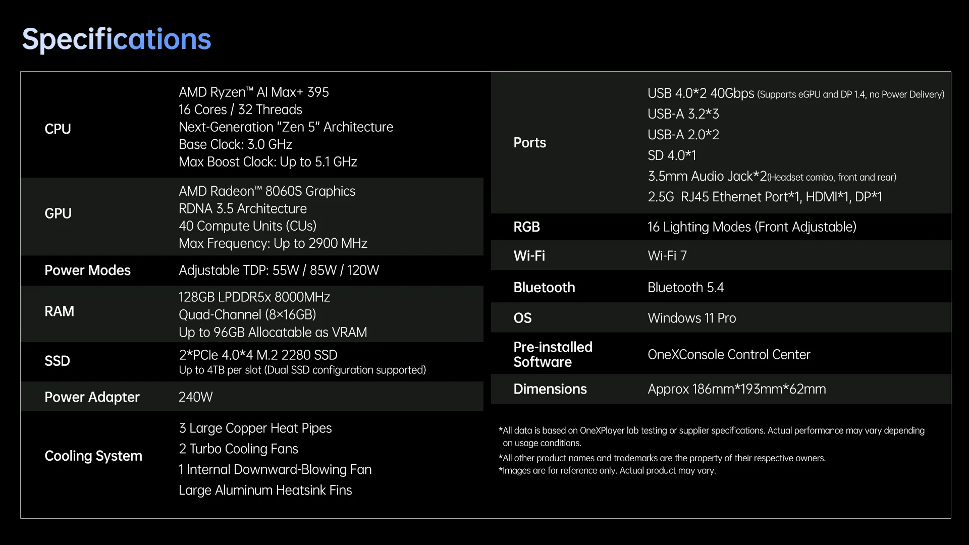 OneXPlayer, OneXStation adlı yeni AMD oyun mini bilgisayarını sessizce piyasaya sürdü. Strix Halo serisinin en üst düzey işlemcisi olan Ryzen AI Max+ 395'e sahip. Şirket şu anda Zen 5 CPU'yu 8.000MHz'de çalışan 128GB LPDDR5X RAM ile eşleştiren tek bir yapılandırma sunuyor.