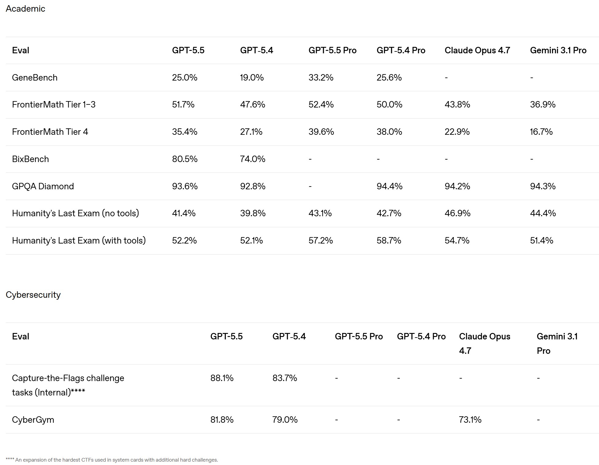 OpenAI'nin en yeni yapay zekaları, zorlu akademik problemleri çözme ve bilgisayarları araç olarak kullanma becerilerini geliştirmeye devam ediyor. Bu gelişmeler aynı zamanda biyolojik tehditler yaratmak için gereken protokoller ve ağları ve sistemleri başarılı bir şekilde hacklemek için gereken yöntemler hakkında daha fazla bilgi sahibi olmayı da beraberinde getiriyor. Genellikle GPT 5.5 ve GPT 5.5 Pro'nun bu alanlardaki performansı, rakip YZ modelleri Opus 4.7 ve Gemini 3.1 Pro'dan daha iyidir. Son zamanlarda Claude modellerinin kullanıcıları Antropik YZ'ler tarafından üretilen daha güvensiz kodlar buldular.