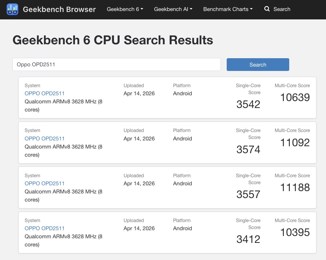 Beklendiği gibi Oppo, Pad 5 Pro'yu standart donanımla donattı Snapdragon 8 Elite Gen 5 bulunan 7 çekirdekli alternatif yerine yonga seti N6'yı bulun. Sonuç olarak, Pad 5 Pro çok çekirdekli iş yüklerinde katlanabilir muadilini kolayca geride bırakırken, tek çekirdekli alternatiflerde onunla eşleşiyor.
