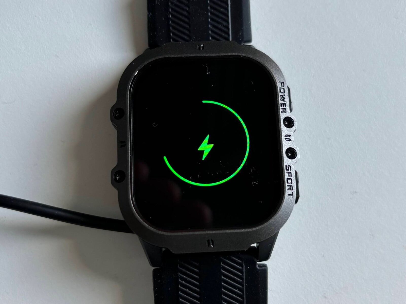 Pil seviyesinin uygulamada veya saatin kısa menüsünde yüzde olarak gösterilmemesi üzücü. Bunun için ayrı bir menü öğesine erişilmesi gerekiyor. BT20 kablosuz QI şarjını desteklemiyor. İki metal pimli şarj fişi, akıllı saatin alt tarafına manyetik olarak takılır. USB-A bağlantılı şarj kablosu dahildir, ancak ilgili bir güç kaynağı ünitesi dahil değildir.