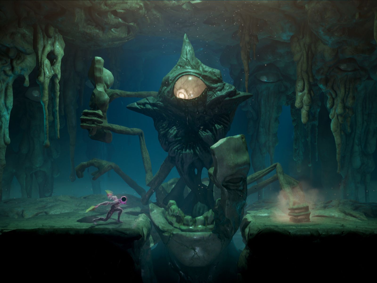 Kim olduğunuzu kimse bilmiyor, siz bile ve yüz yerine kara deliği olan bir yaratığa bürünüyorsunuz. Bu doğaüstü 3D dünyada, gerçek kimliğinizi ortaya çıkaracak sırları ortaya çıkarmak için mağaraları ve diğer ortamları geçmeniz gerekiyor. Ancak yolunuzda birçok korkunç yaratıkla karşılaşacaksınız. Farklı yeteneklerinin yanı sıra yararlanmanız gereken zayıflıkları da var. Ve canlı silahlarla savaşacaksınız.