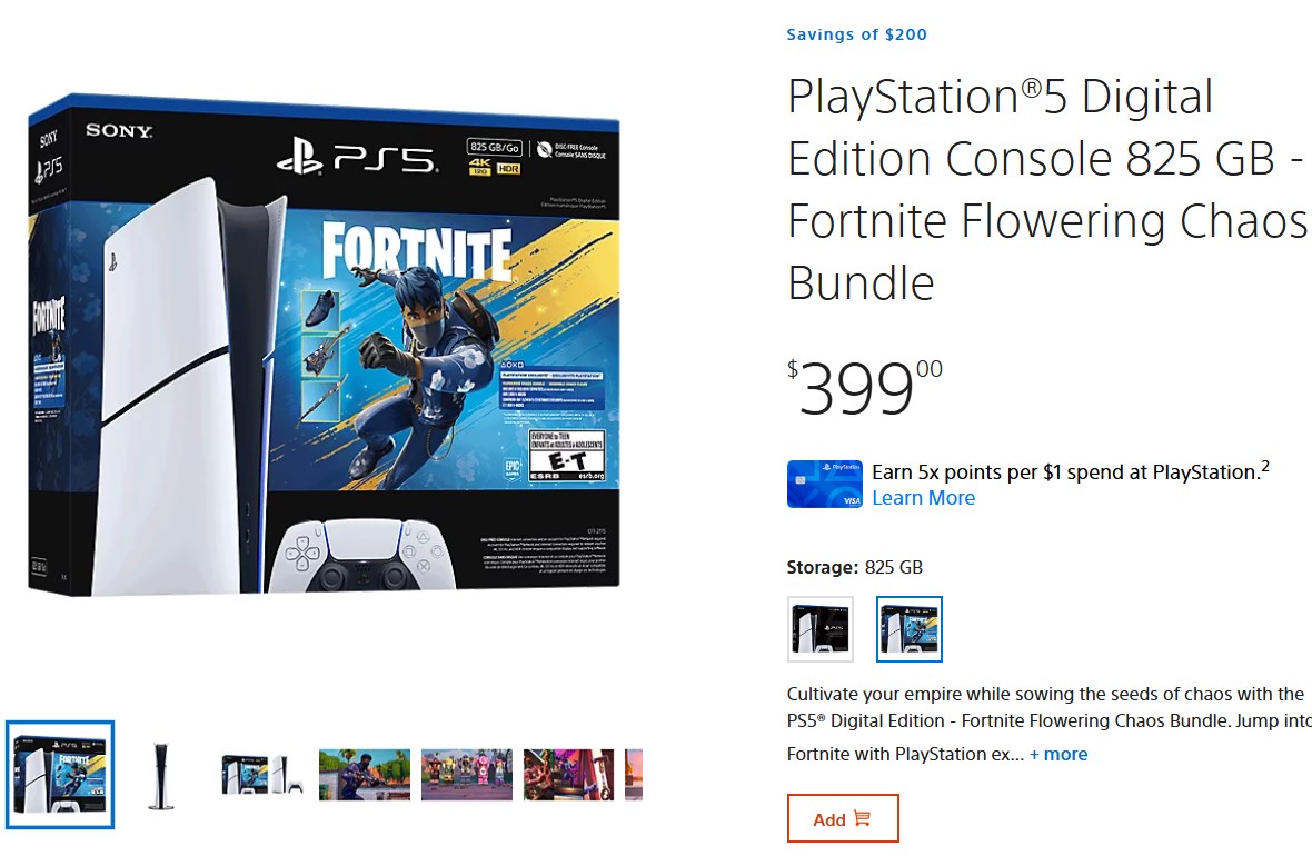 Resmi PlayStation Store'a gittiğinizde, PS5 Slim Digital Edition - Fortnite Flowering Chaos paketinin oldukça indirimli bir fiyatla listelendiğini göreceksiniz. Daha önce paket 599 dolara satılıyordu, ancak Sony fiyatı 200 dolar düşürerek 399 dolara indirdi. Fiyat artışından önce aynı modelin fiyatı 499 dolardı, yani eski standart fiyatından 100 dolar daha ucuza alabiliyorsunuz.