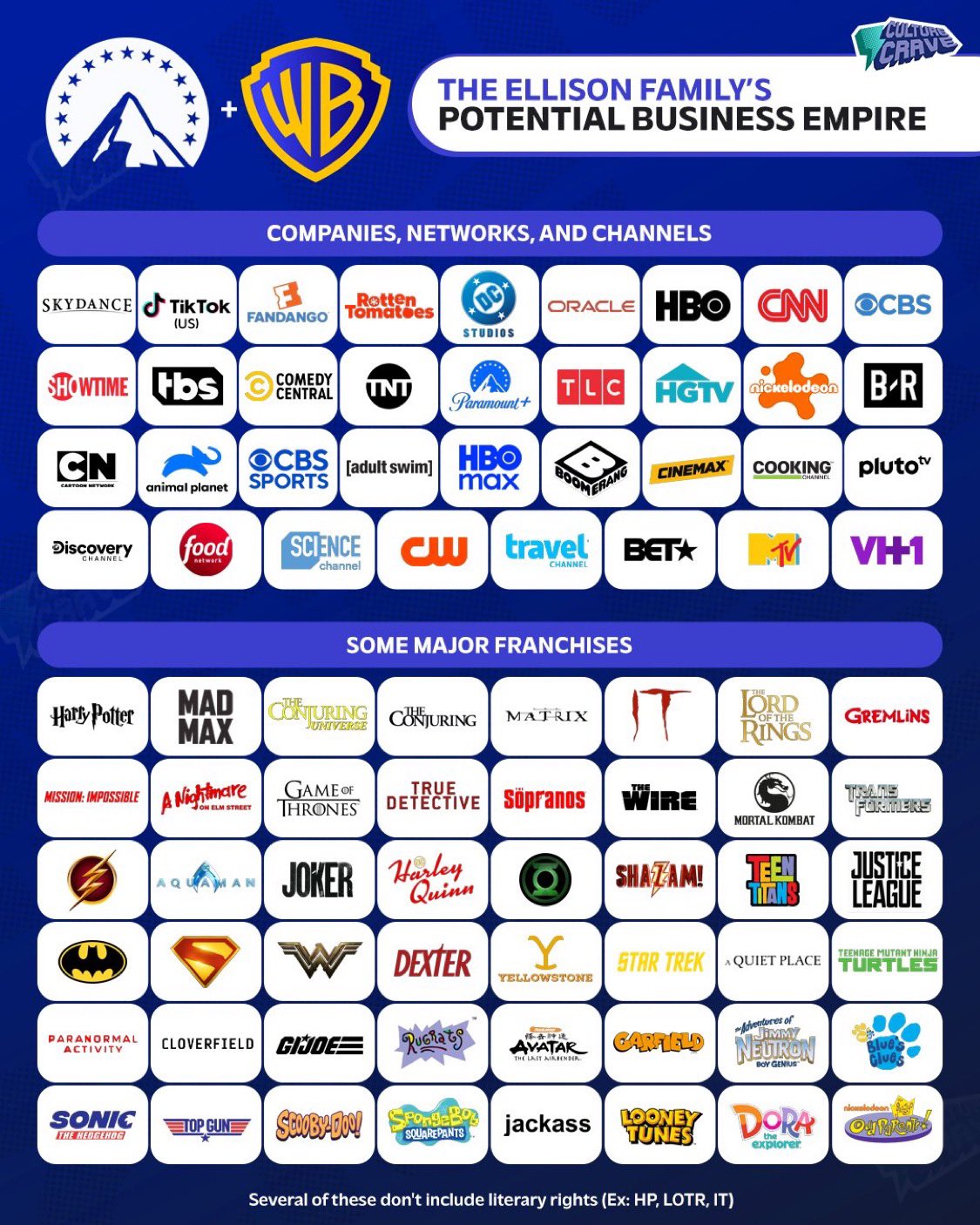 Netflix'in satın alınması WB'nin IP sinema filmlerinin akıbeti konusunda endişelere yol açarken, Paramount Skydance'in sahibi Larry Ellison ve oğlu David'in önde gelen Cumhuriyetçi bağışçılar olması ve ABD Başkanı Donald Trump ile yakın bağları bulunması nedeniyle Paramount birleşmesi siyasi propaganda konusunda endişelere yol açıyor. Paramount CNN'e sahip olmakla ilgileniyor ve Netflix'in aksine tüm Discovery TV kanalları.