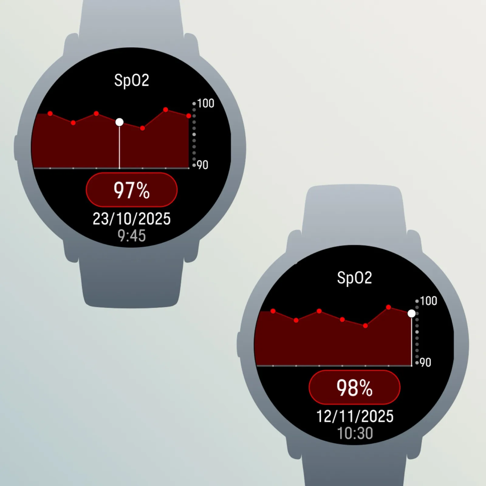 Akıllı saat güncellemesi öncelikle kolaylık sağlayan özellikler sunuyor. Polar OS 5 ile artık doğrudan akıllı saat üzerinden birden fazla alarm kurmak mümkün ve saat yüzleri bir gece moduna sahip. "Rahatsız Etmeyin" modu etkin olduğu sürece, ekran yalnızca bir düğmeye basıldığında biraz aydınlanırken, bazı saat yüzleri artık daha minimalist bir zaman formatı gösterebiliyor. Ayrıca, yeni bir grafik zaman içinde kandaki oksijen doygunluğunu gösterebiliyor.