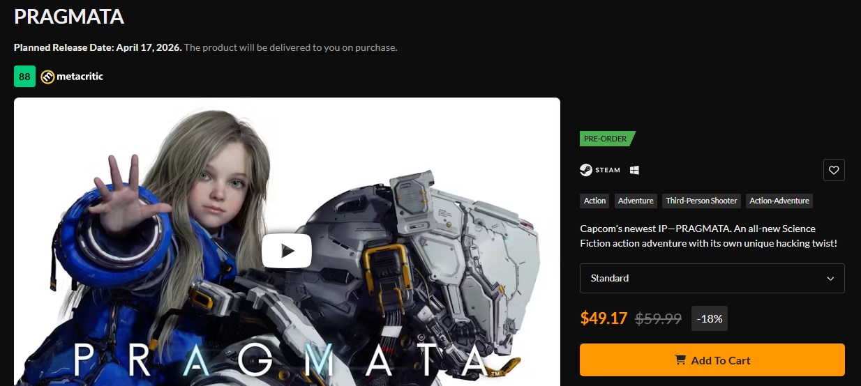 Yeni çıkan oyunlarda genellikle bu kadar erken indirim yapılmaz. Çoğu durumda, oyuncular herhangi bir fiyat indirimi görmeden önce haftalar hatta aylar beklemek zorunda kalır. Ancak burada durum böyle değil. Fanatical'da Pragmata %18 indirimle 59,99$ olan fiyatını 49,17$'a düşürmüş durumda.