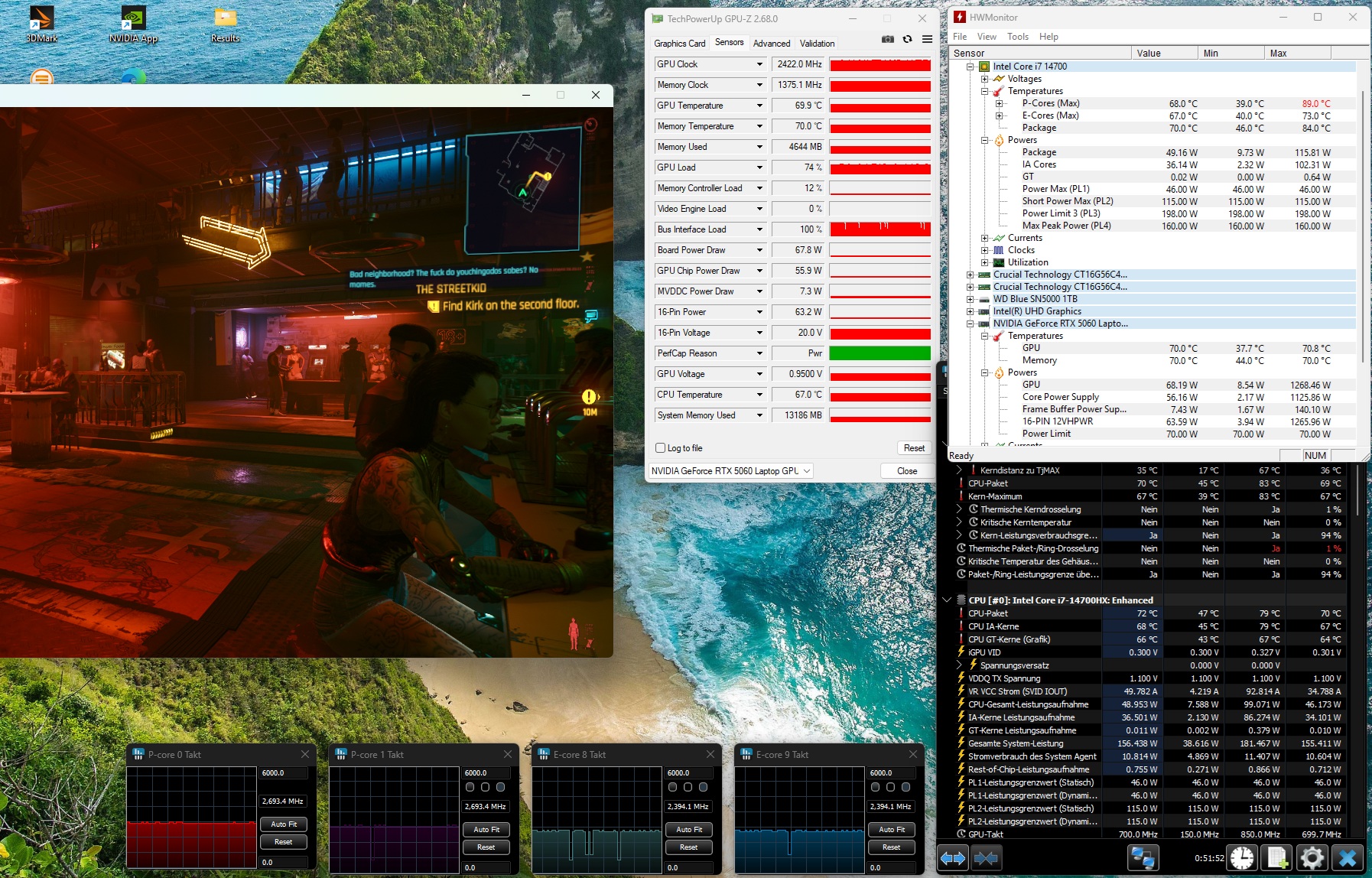 | Cyberpunk 2077 ultra external monitor * (Watt) | 151.9 | 129.6 15% | 120.6 21% | 164.5 -8% | 165 -9% | 130 14% | |