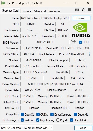| Tulpar T6 V3.5 Intel Core i7-14700HX ⎘ NVIDIA GeForce RTX 5060 Laptop ⎘ 32 GB Bellek, 1000 GB SSD | Liste fiyatı: 1160 EUR | 2.4 kg | 25 mm | 16.00" 1920x1200 142 PPI IPS | |